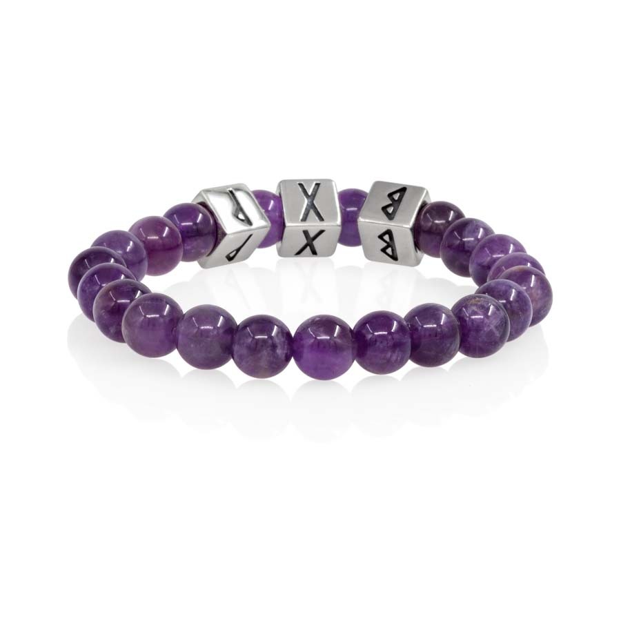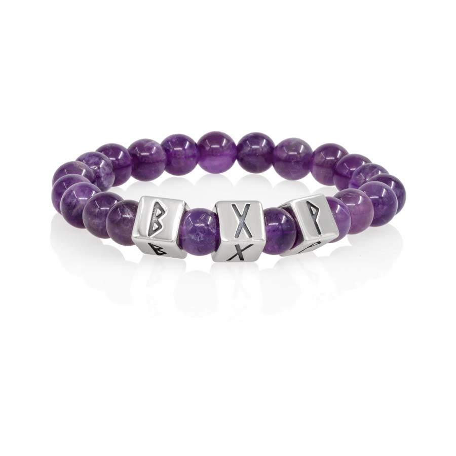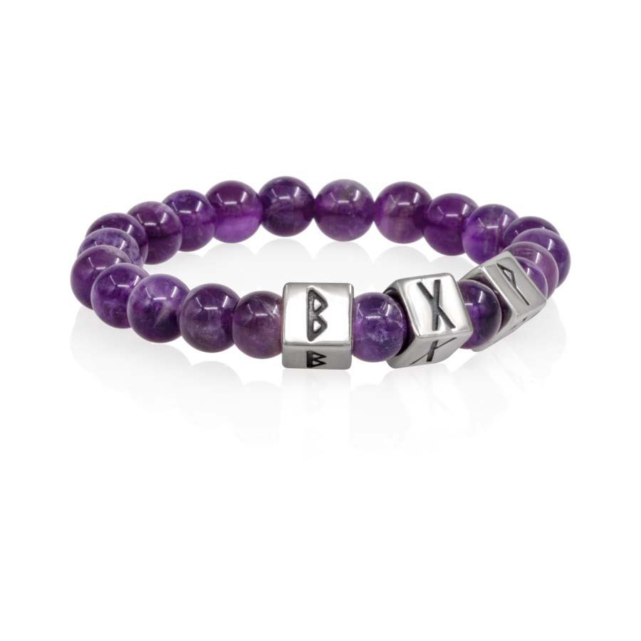 Браслет «Женское счастье» состоит из натурального камня аметиста и рун Беркана, Гебо и Вуньо из серебра 925 пробы, символизирует гармонию, духовный рост и радость. Аметист способствует ясности мысли и внутреннему равновесию, Беркана укрепляет здоровье и содействует очищению от негатива, Гебо приносит гармонию в отношения, а Вуньо наполняет жизнь радостью и позитивом.