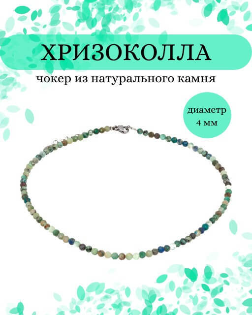 Хризоколла привлекает удачу, раскрывает интуитивные способности, помогает в развитии аналитических навыков. Обостряет чувства и эмоции, но при этом не даёт возможность перейти грани разумного. Благотворно влияет на работу щитовидной железы, нервной системы за счет способности находить баланс во всём. Идеален для женщин, поскольку укрепляет женское здоровье и помогает бороться с его патологиями.