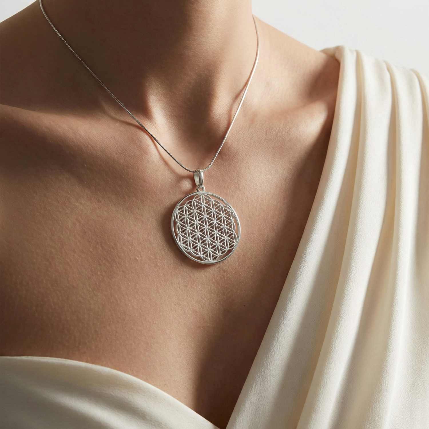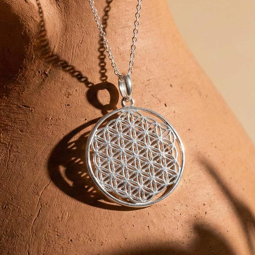 Второе название Цветка Жизни – зерно жизни, неспроста древние славяне, египтяне и греческий народ использовали талисман, затевая любое новое дело. Обустраивали новое жилище – подвеска или изображение мистического знака присутствовали рядом. Если человек осваивал торговлю, ему также сопутствовала нескончаемая сила мироздания. С помощью медальона Цветок Жизни, фото которого можно увидеть ниже, решались проблемы с бесплодием и невозможностью выносить ребёнка.