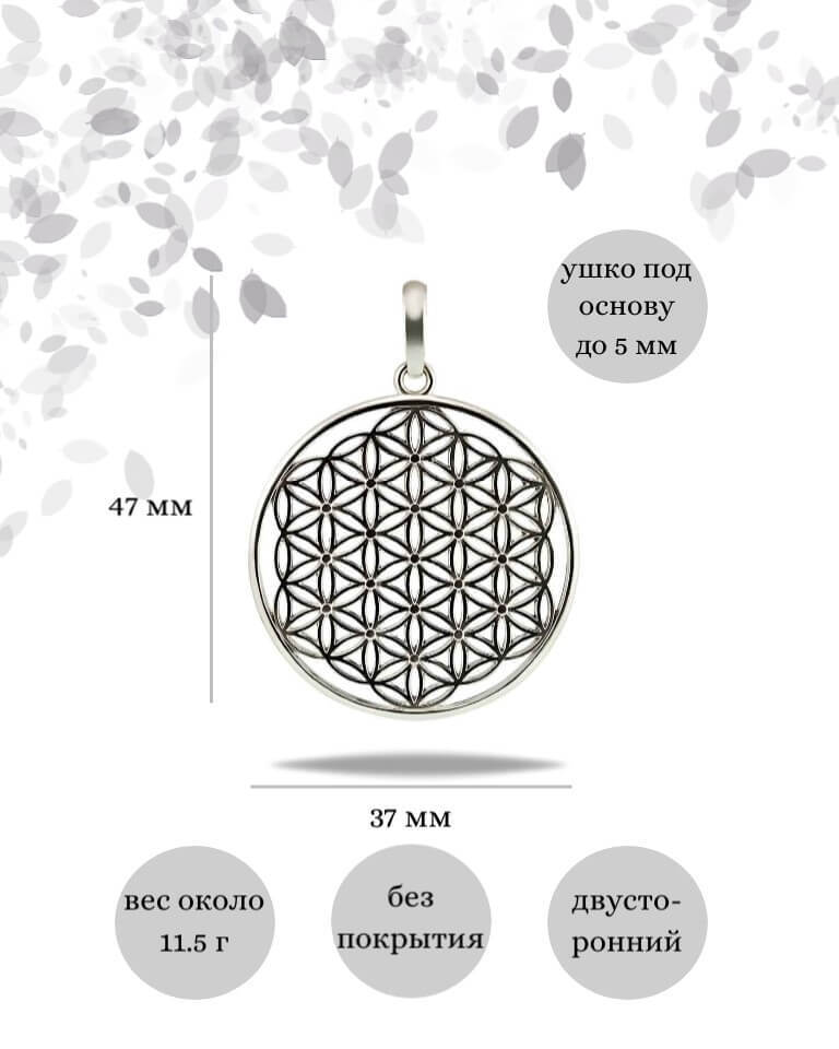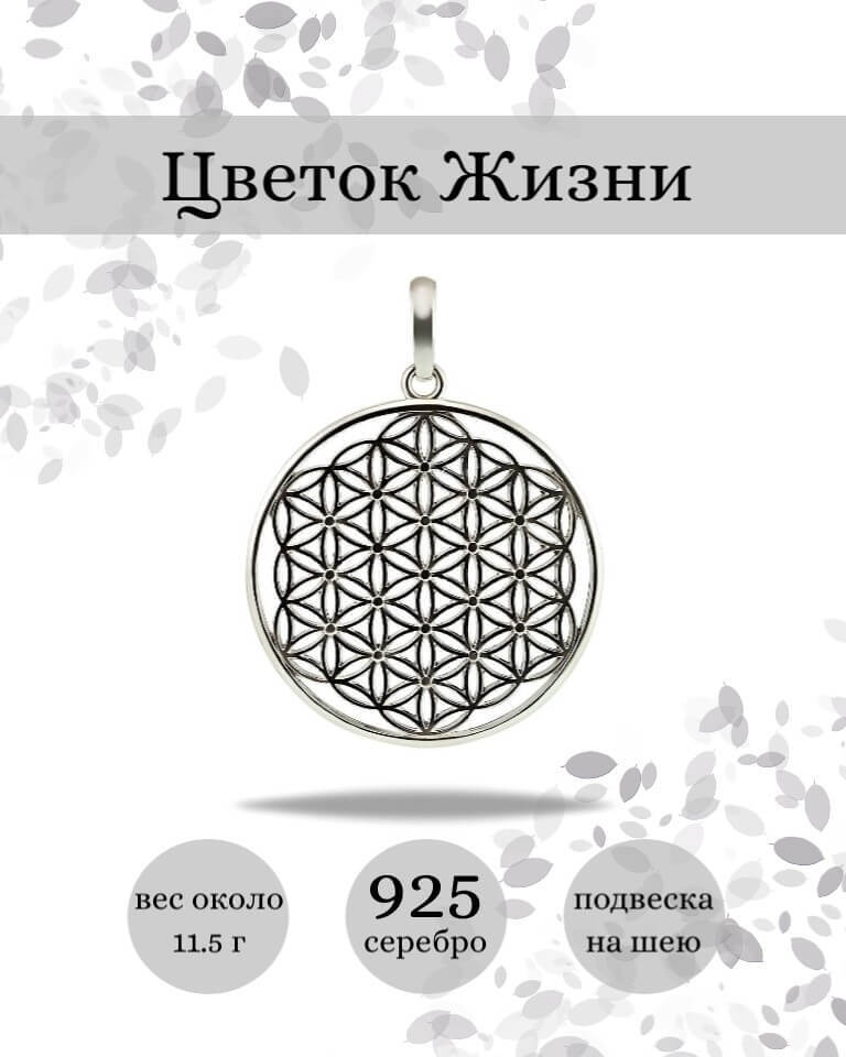 Подвеска цветок Жизни – удивительная матрица, узор, без которого существование мира было бы невозможным. Тот, кто хочет управлять миром, иметь в руках большую власть, обязательно должен обзавестись подвеской удивительной красоты, сделанным из серебра. Прочное и натуральное покрытие не истирается и не облазит, сочетать кулон можно с другими подвесками.
