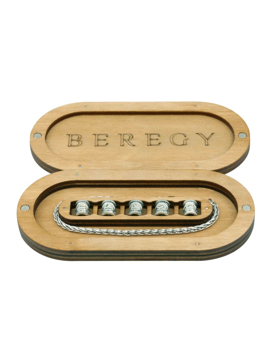 Данный деревянный футляр предусмотрен для нашей брендовой коллекции шармов - скандинавских рун, которые представлены в таких металлах: серебре 925 пробы, серебре с позолотой 999 пробы, мельхиоре, бронзе.