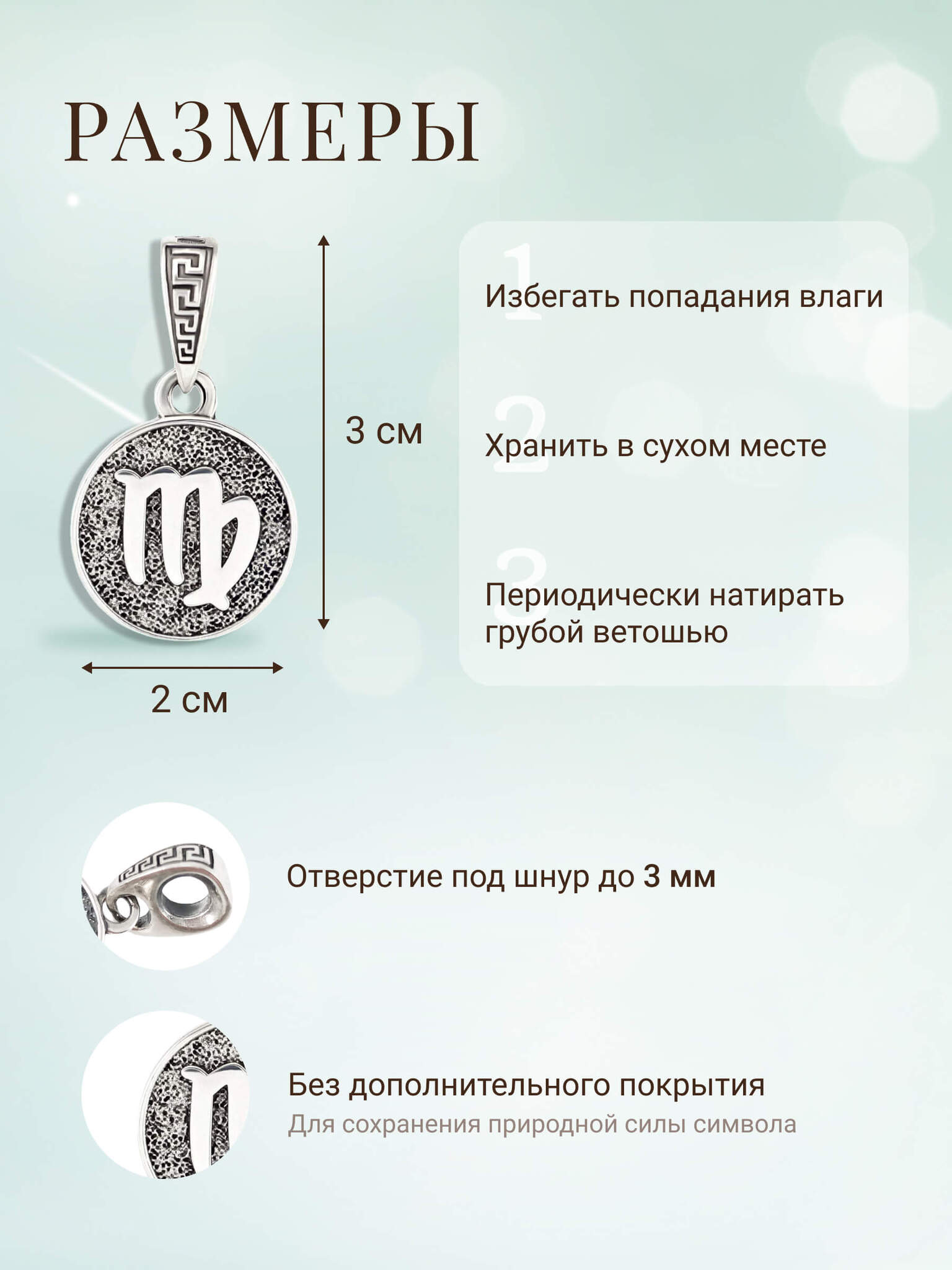 Купить подвеску знак зодиака Дева легко в Beregy! Серия «Зодиаки» от наших мастеров включает 12 классических знаков, созданных из серебра и покрытых благородной патиной для винтажности. Стильный аксессуар со смыслом для мужчин и женщин!