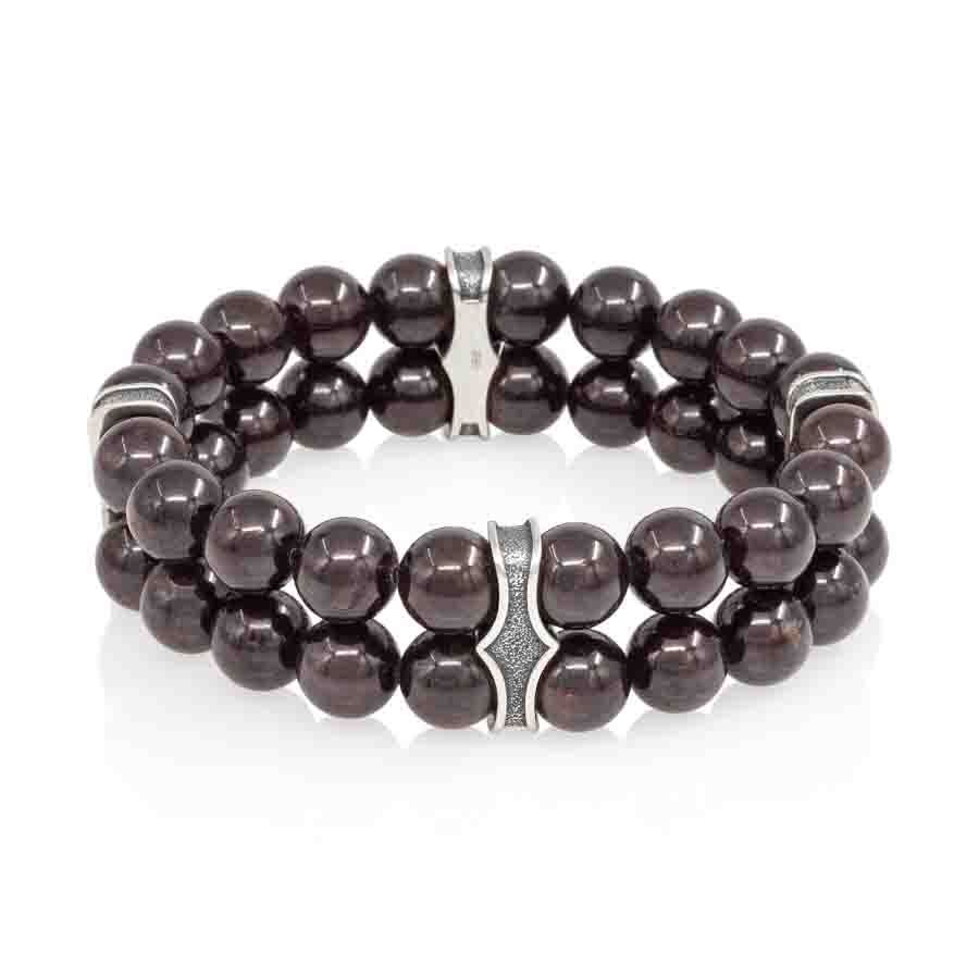 Двойной браслет с шармами из серебра 925 пробы и гранатом 8 мм символизирует гармонию, элегантность и страсть.