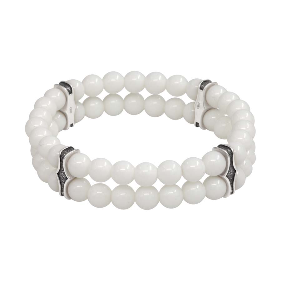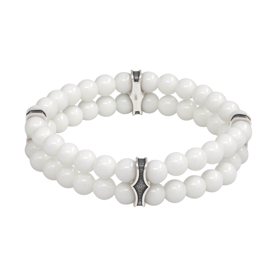 Двойной браслет из керамических бусин 6 мм с шармами из мельхиора