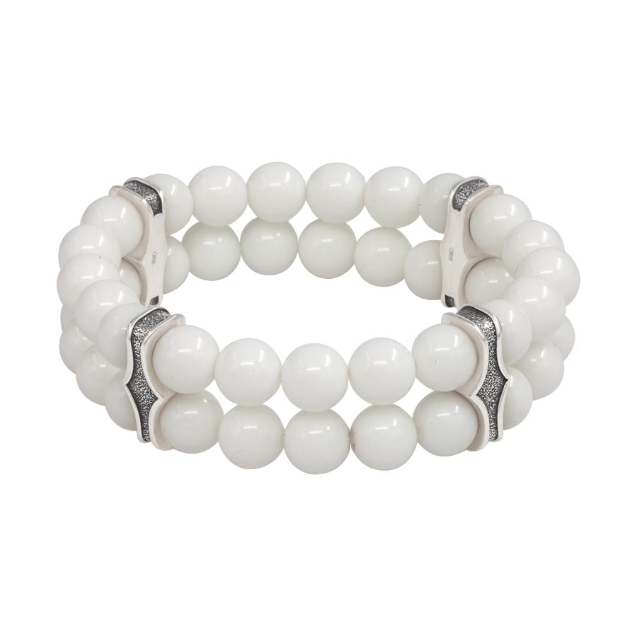 Двойной браслет из керамических бусин 8 мм с шармами из мельхиора