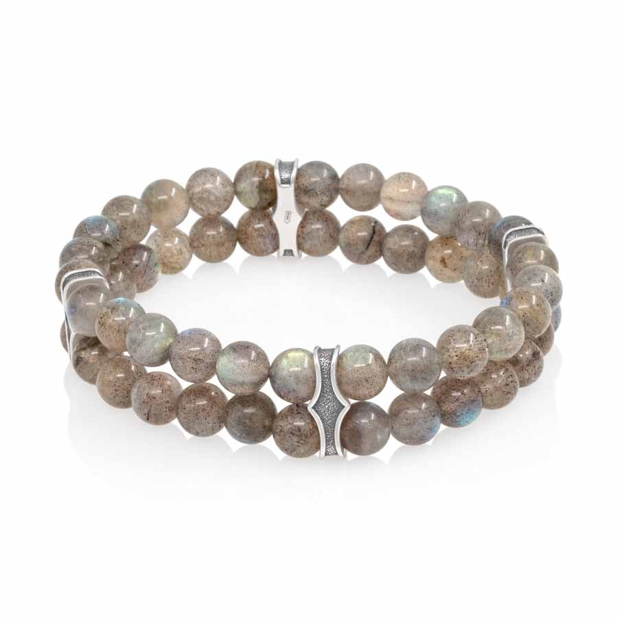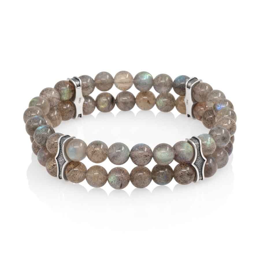 Двойной браслет с шармами из серебра 925 пробы и лабрадора 6 мм символизирует духовное развитие и эмоциональное равновесие.