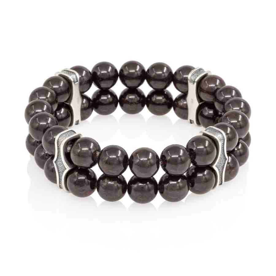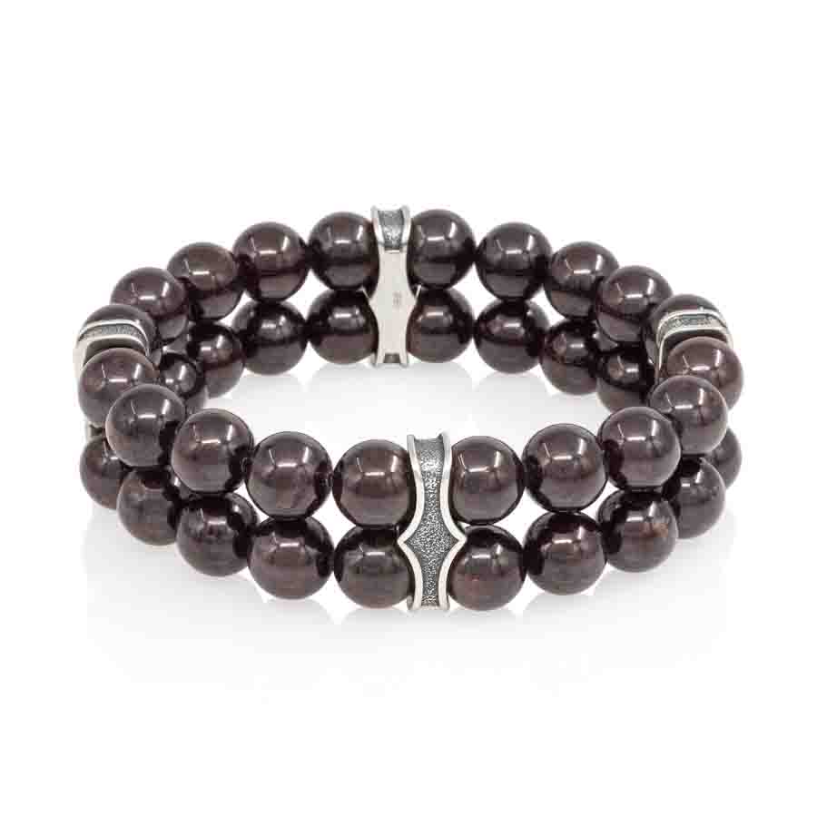 Двойной браслет из натурального камня гранат 8 мм с шармами из мельхиора