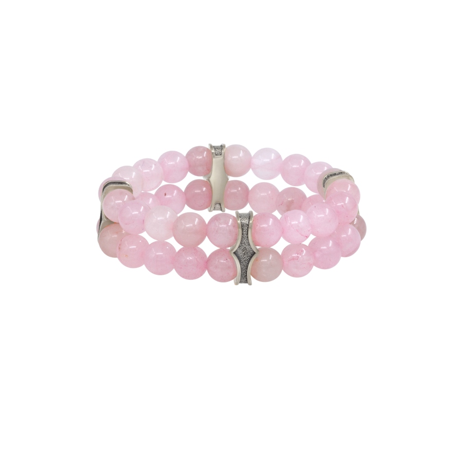Двойной браслет из розового кварца 8 мм с шармами из мельхиора