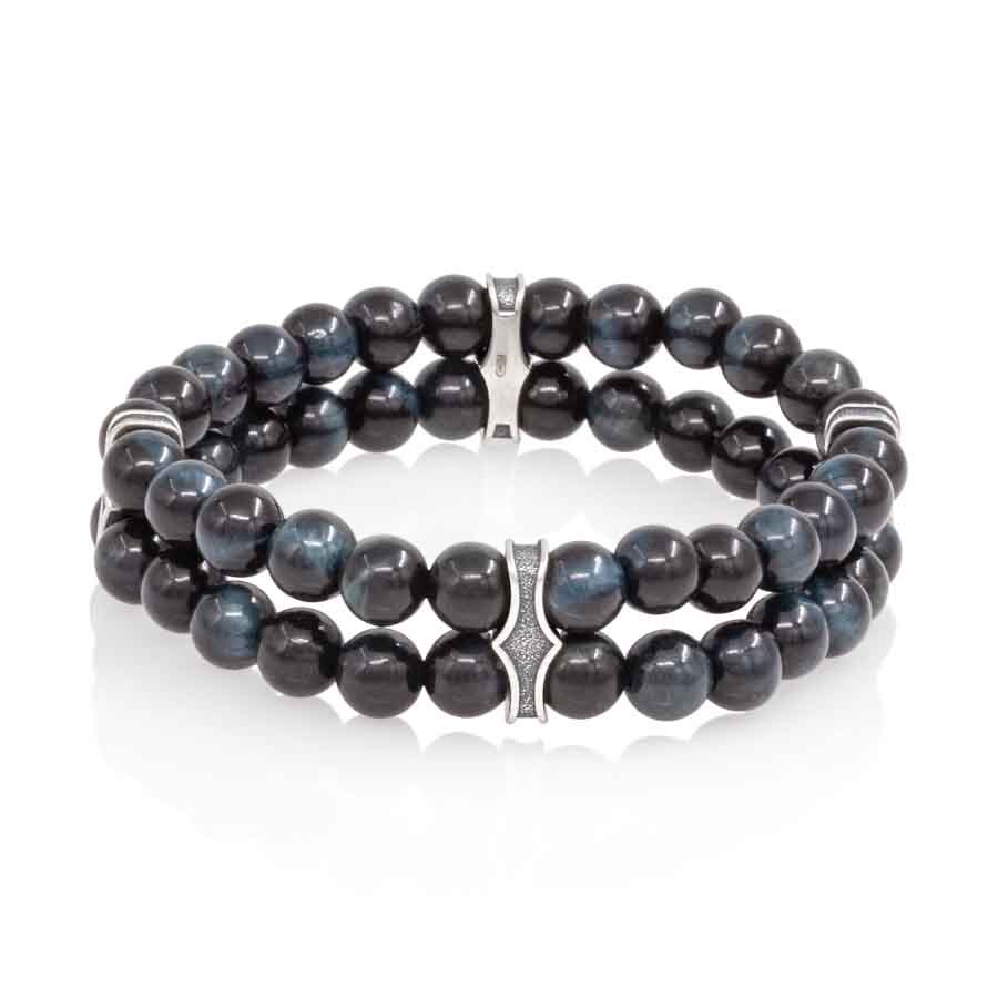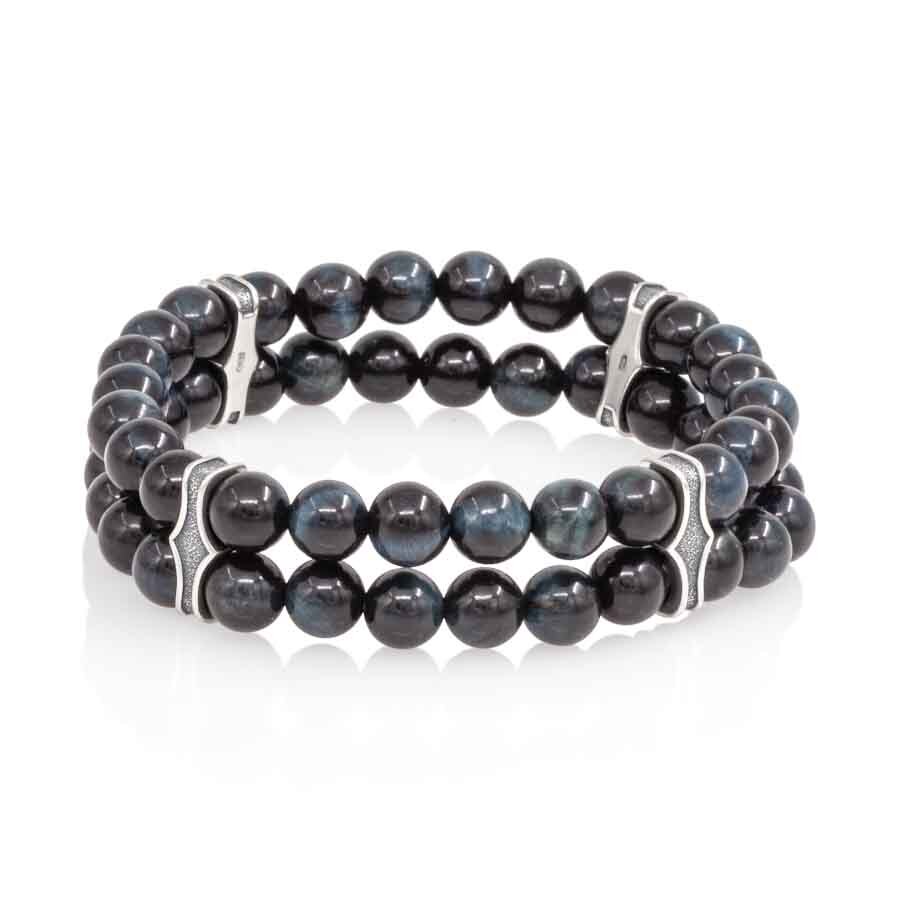 Двойной браслет с шармами из серебра 925 пробы и соколиного глаза 6 мм символизирует защиту от негативной энергии и привлечение удачи.
