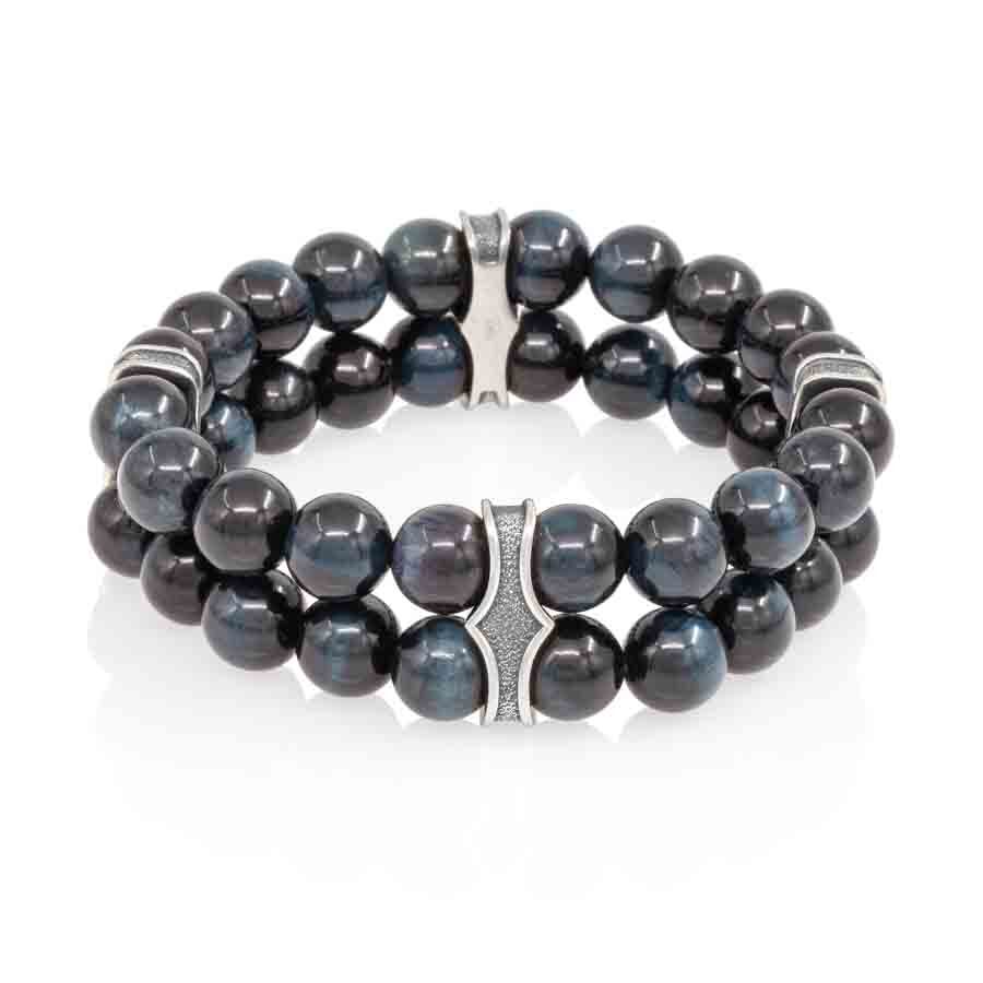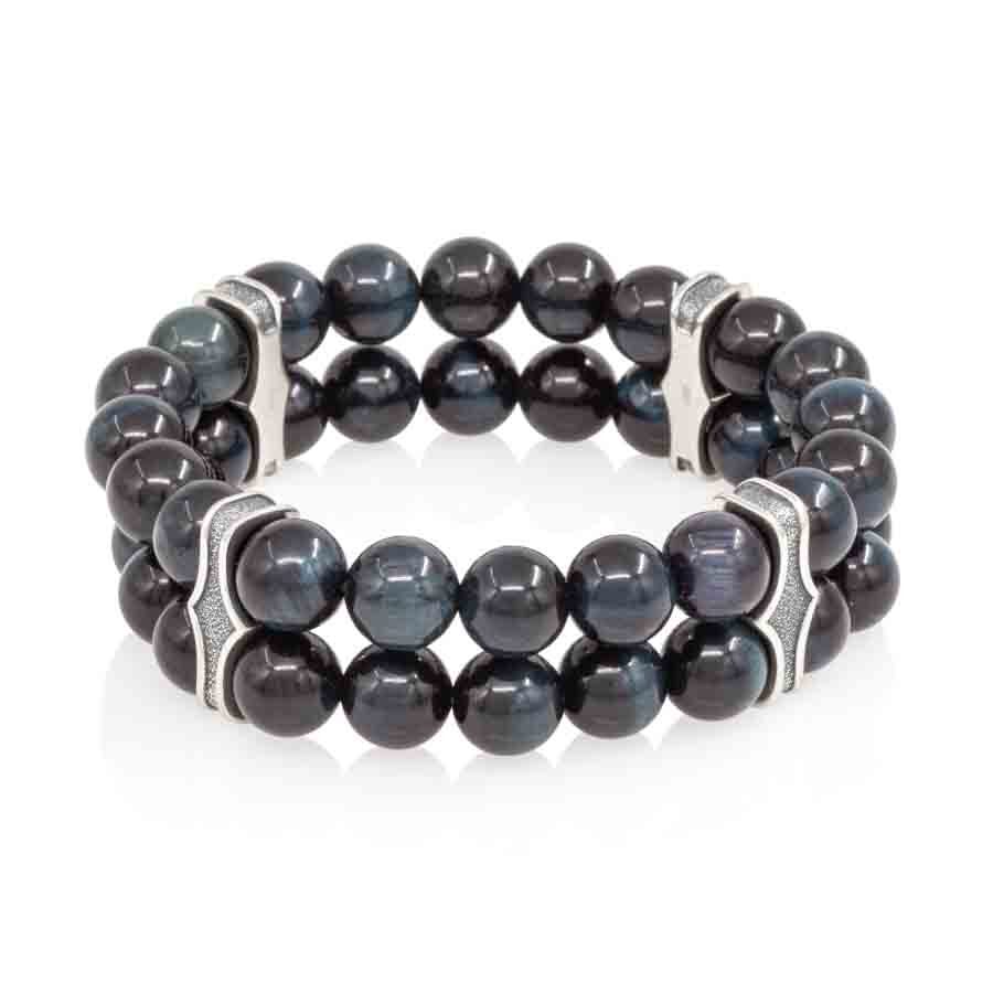 Двойной браслет с шармами из серебра 925 пробы и соколиного глаза 8 мм символизирует защиту от негативной энергии и привлечение удачи.