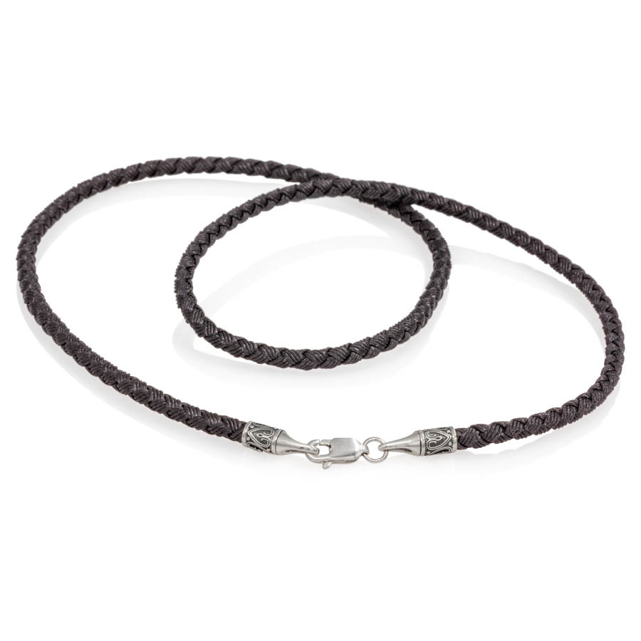 Гайтан Лоза тканевый чёрный 3 мм с замком S из серебра 925