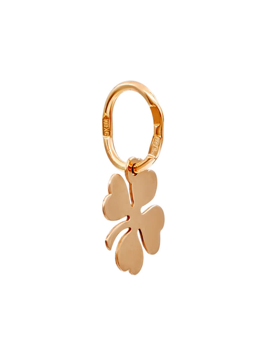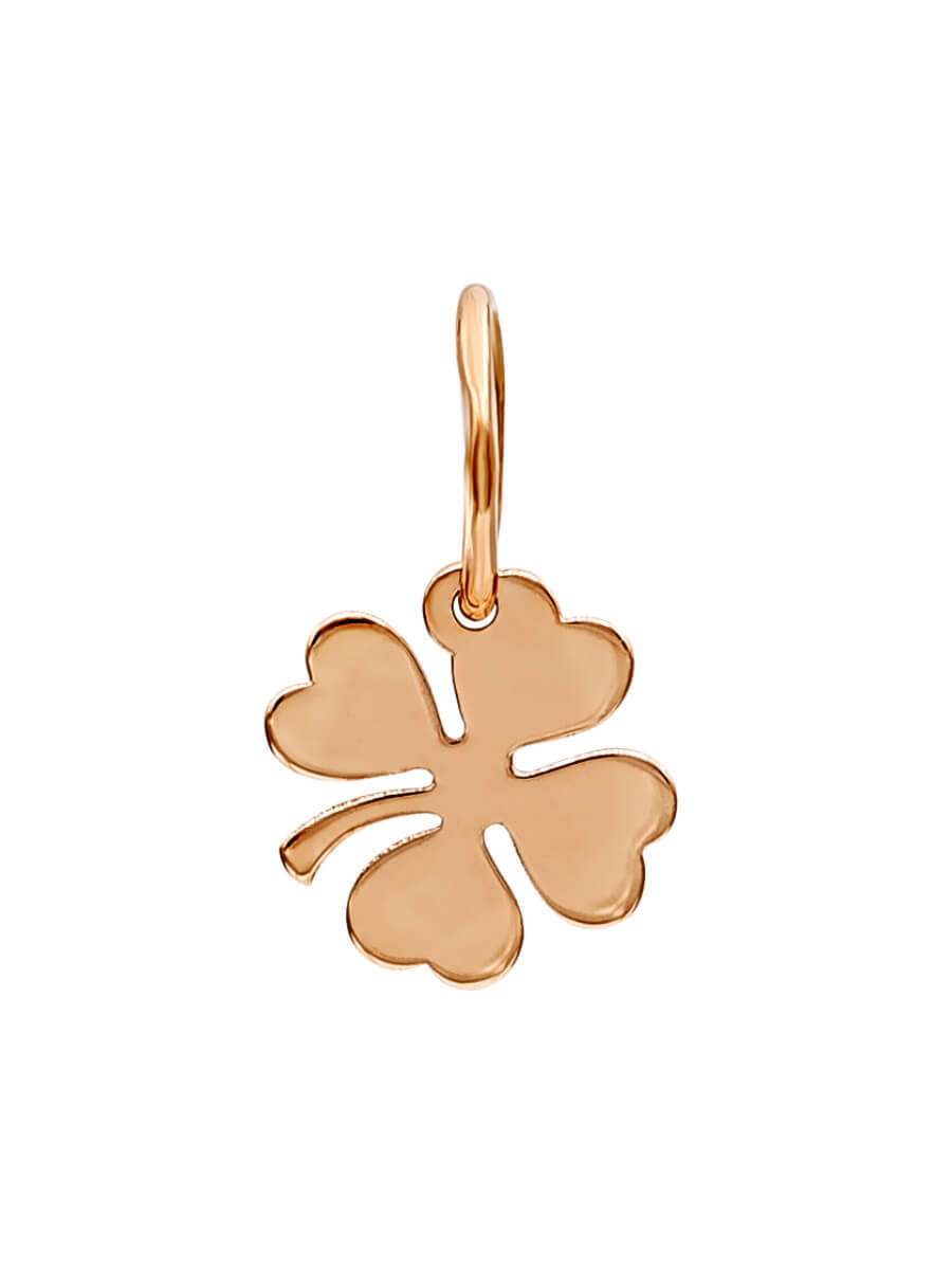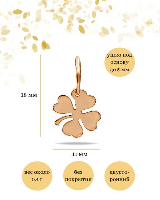 Ювелирная золотая подвеска на шею Клевер малый изготовлена из красного золота 585 пробы. Размер изделия 18х11 мм, ушко под основу до 5 мм, вес около 0,4 г.