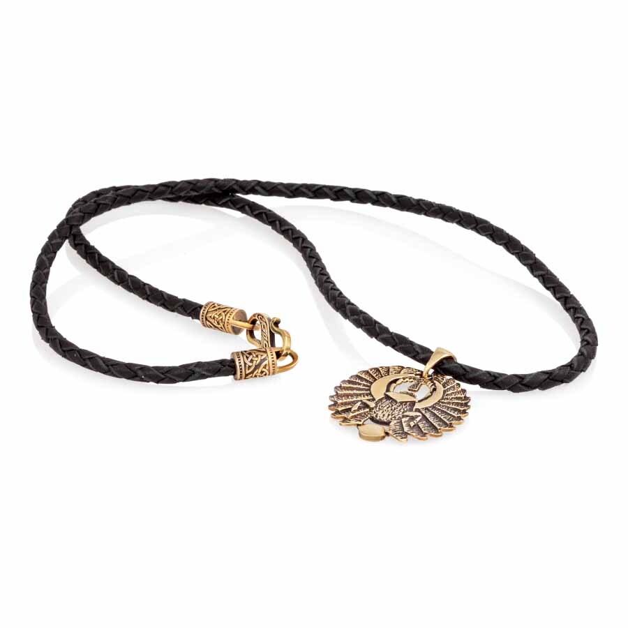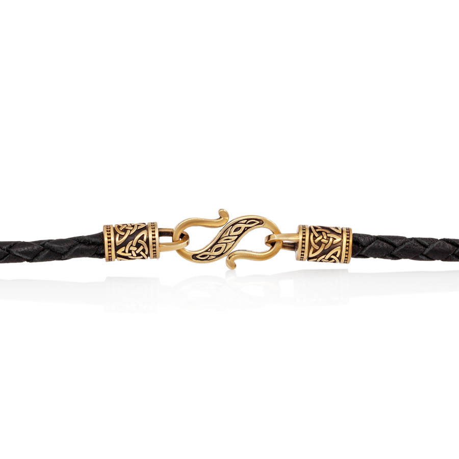 основа гайтана состоит из кожаного плетеного шнура ручной работы. Диаметр кожаного гайтана составляет 3 мм. В гайтане используется фурнитура состоящая из трех деталей отлитых из бронзы, тип фурнитуры - крючок. Фурнитура очень крепкая, изготовлена методом литья по выплавляемым моделям. С уверенностью скажем, что сломать замок случайно невозможно, в отличии от замков китайского производства. Бронзовая фурнитура надежно закреплена с помощью клея.