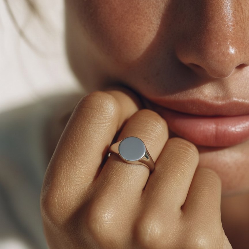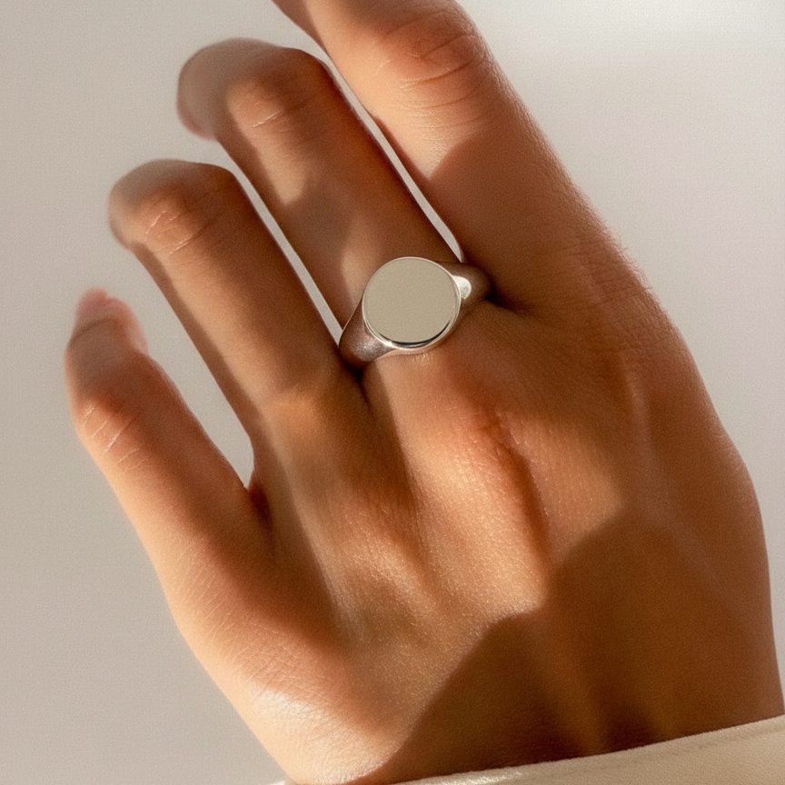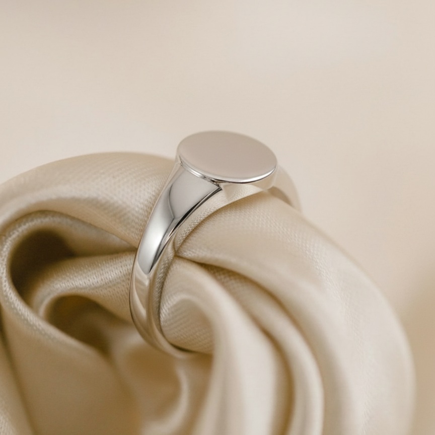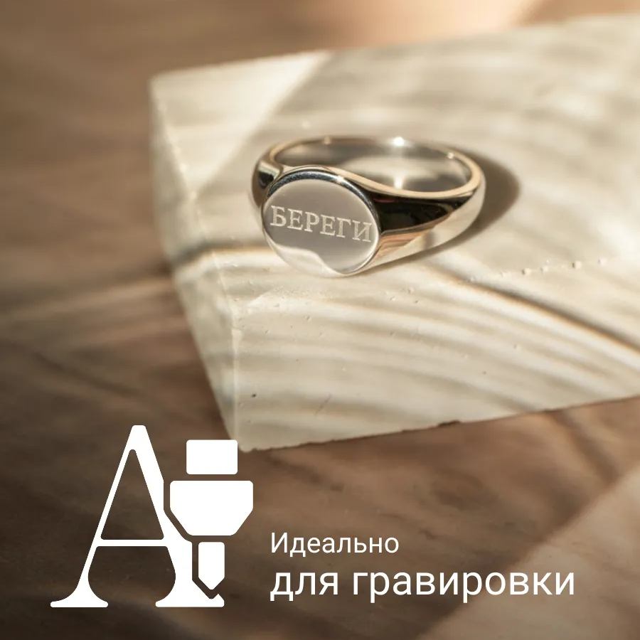 Серебряное кольцо с круглой площадкой, специально созданное для персональной гравировки. Идеальный подарок на день рождения, юбилей или памятное событие. Высококачественное серебро 925 пробы гарантирует долговечность, а уникальный дизайн делает кольцо индивидуальным.