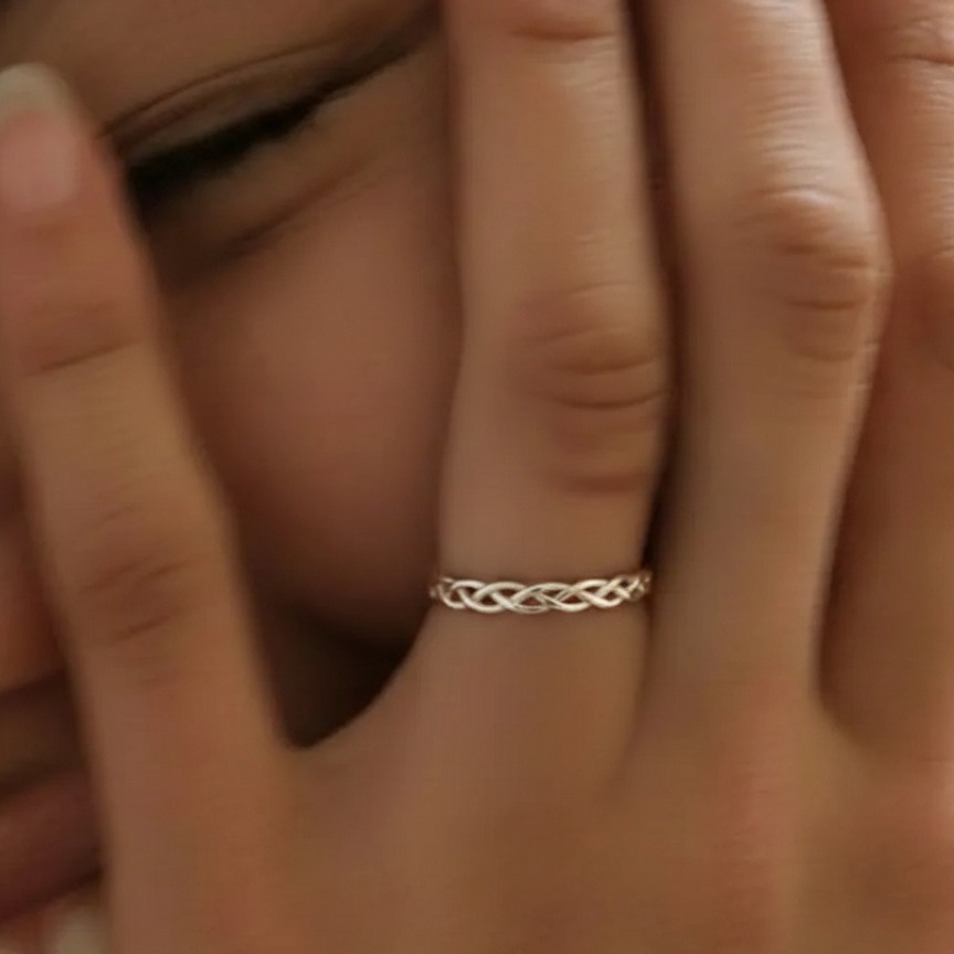 Кольцо "Нити" выполнено в минималистичном, но выразительном дизайне, который имитирует переплетение тонких линий или нитей. Эта структура придает изделию визуальную легкость и воздушность. Кольцо идеально подойдет тем, кто предпочитает изящные, но неброские украшения, которые легко интегрировать в повседневный стиль. Благодаря своей лаконичности, оно будет уместно смотреться как в неформальной, так и в деловой обстановке.