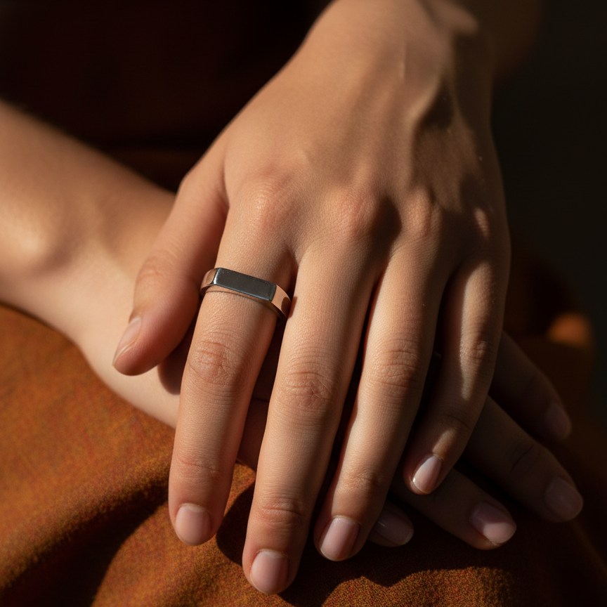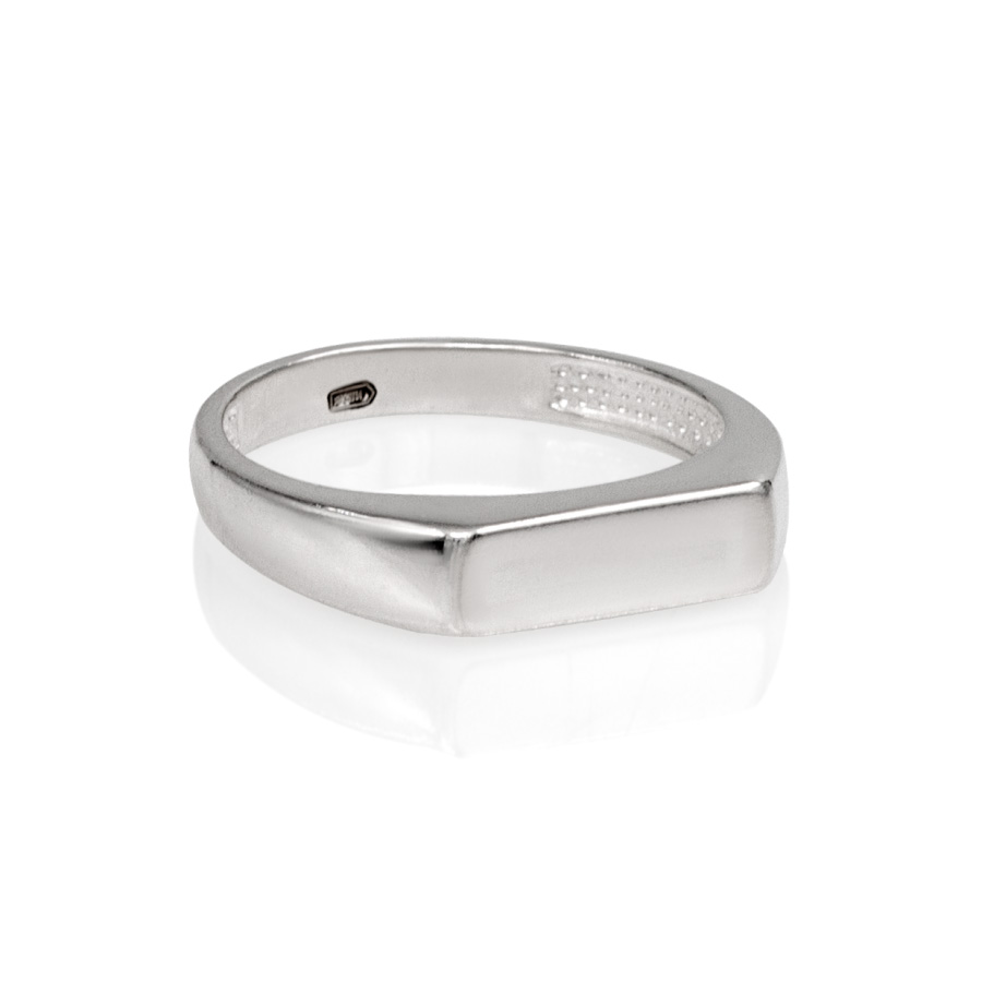 Серебряное кольцо с прямоугольной площадкой, идеально подходящее для персональной гравировки. Стильный аксессуар для мужчин и женщин, который можно подарить на день рождения, годовщину или другой памятный день. Высококачественное серебро 925 пробы гарантирует долговечность, а уникальный дизайн делает кольцо индивидуальным.
