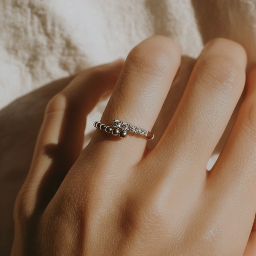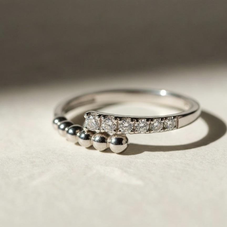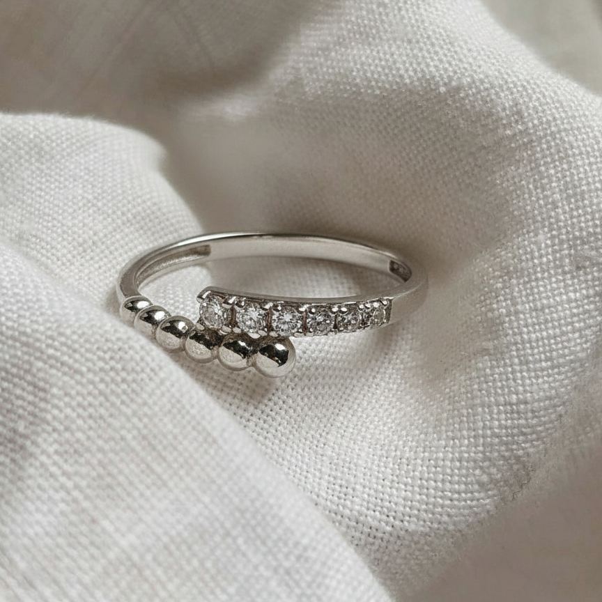 Кольцо «Точки с камнями» из серебра 925 пробы — элегантное украшение, которое гармонично будет смотреться на пальце, подчёркивая утончённость и индивидуальность его обладательницы. Кольцо "Точки" представляет собой изящное ювелирное изделие, ориентированное на современную классику и деликатный блеск. Грани фианитов переливаются даже при минимальном освещении, придавая образу дополнительную глубину. Кольцо отлично смотрится в сочетании с другими кольцами на разных фалангах пальцев или рядом с более крупными, но простыми по форме кольцами.