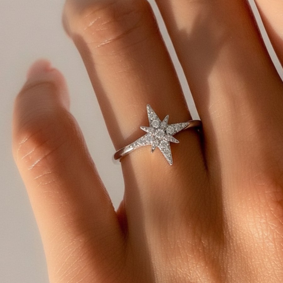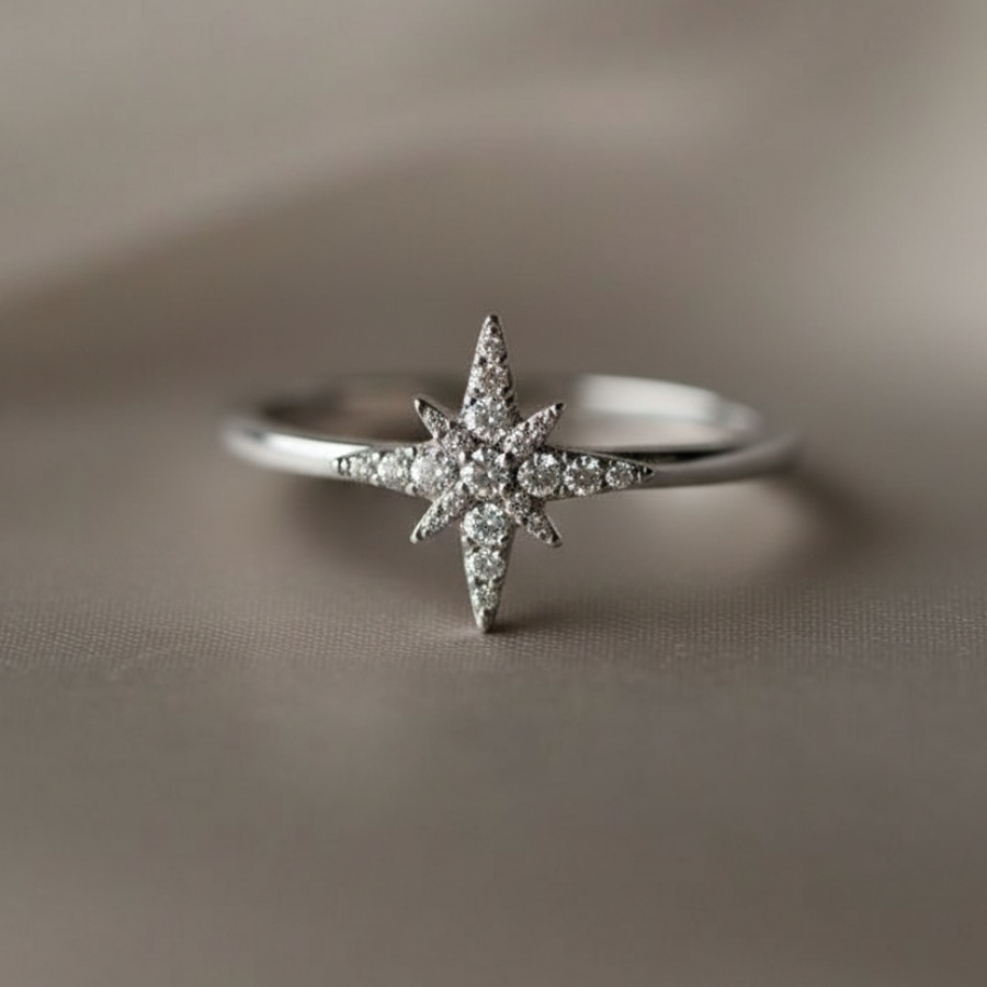 Изящное серебряное кольцо "Вифлеемская Звезда" – это воплощение нежности и минимализма. Кольцо имеет тонкую шинку, что делает его очень легким и комфортным для ежедневного ношения. В центре расположена сияющая Вифлеемская звезда, украшенная россыпью мелких фианитов. Благодаря изящному дизайну, кольцо отлично смотрится как самостоятельное украшение, так и в комбинации с другими кольцами.