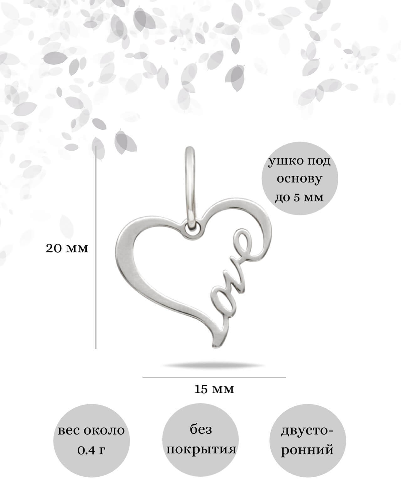 Ювелирная подвеска изготовлена из серебра 925 пробы. Размер изделия 20х15 мм, ушко подходит на основу до 5 мм.