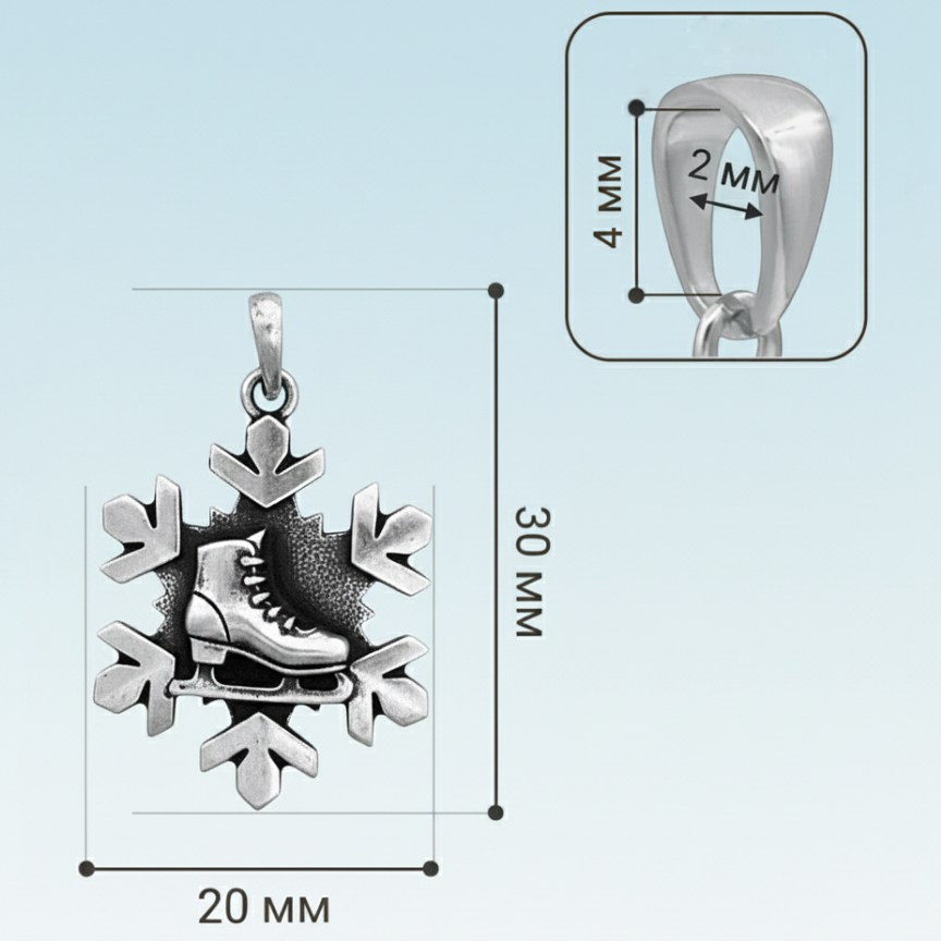 Изделие выполнено из высококачественного бижутерного сплава – мельхиора. Мельхиор отличается благородным серебристым блеском, высокой износостойкостью и при правильном уходе сохраняет свой вид долгие годы. Детальная проработка конька и ажурные лучи снежинки делают подвеску идеальным подарком для фигуристов, тренеров или просто ценителей зимних видов спорта и необычных аксессуаров.