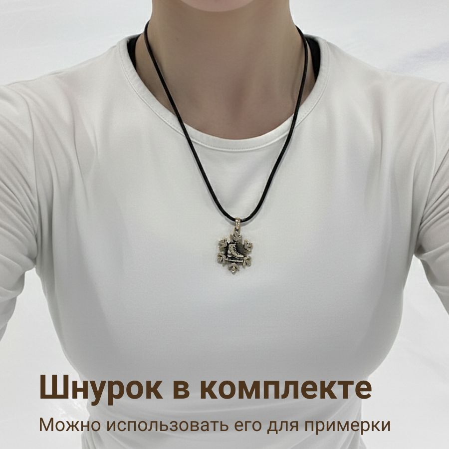 Подвеска объединяет в себе два ключевых символа. Снежинка – знак уникальности, чистоты и скоротечной красоты зимы. Конёк для фигурного катания – символ движения, грации, силы воли и стремления к победе.