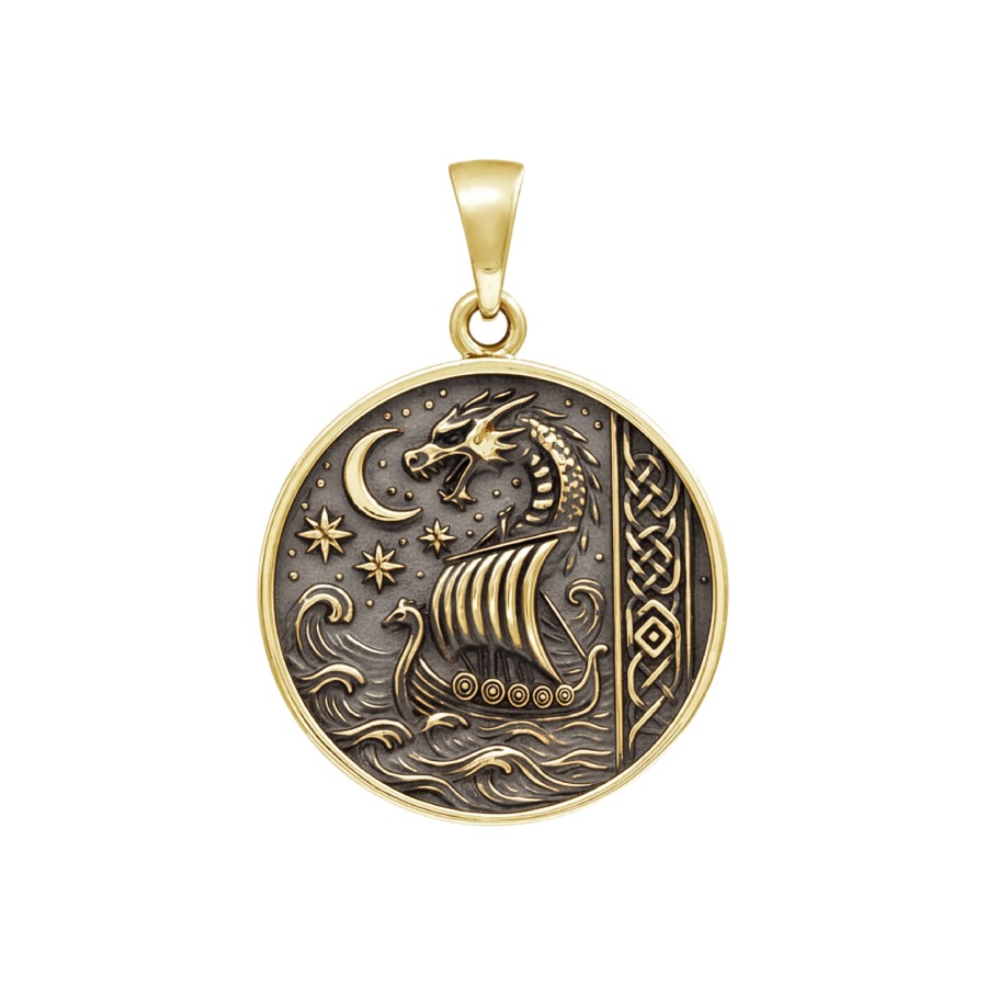 Драккар олицетворяет путь и поиск, а дракон — мудрость и защиту. Идеальный талисман для тех, кто не боится новых горизонтов.