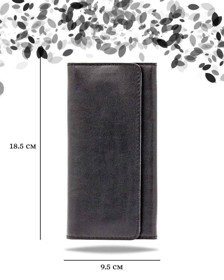 Размер портмоне в сложенном виде 18,5х9,5х1,5 см.