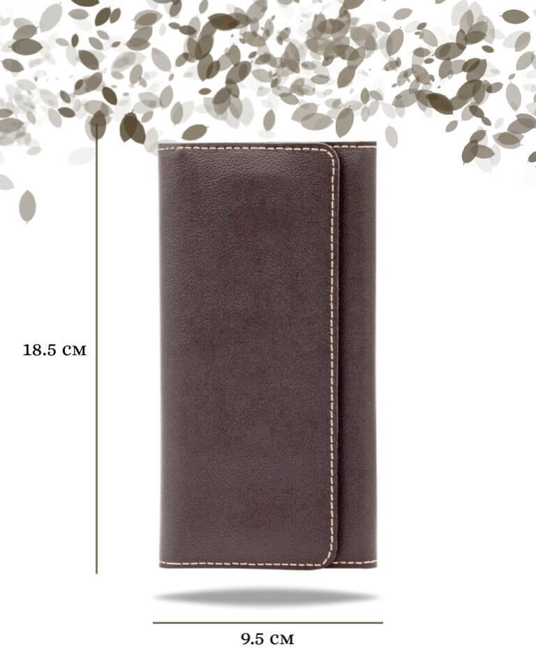 Размер портмоне в сложенном виде 18,5х9,5х1,5 см.