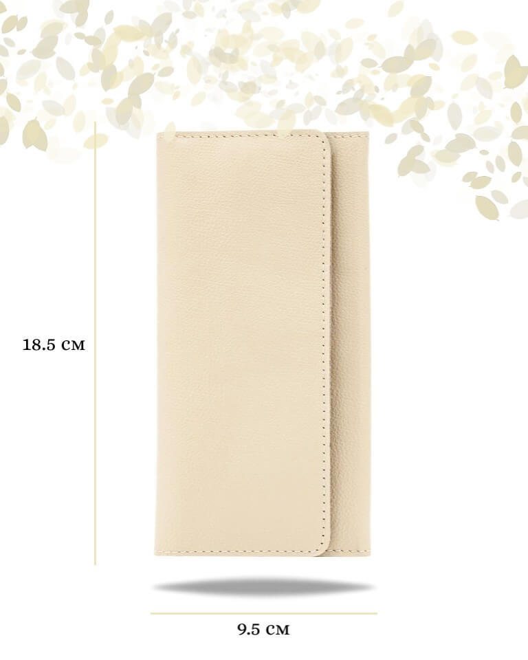 Размер портмоне в сложенном виде 18,5х9,5х1,5 см.