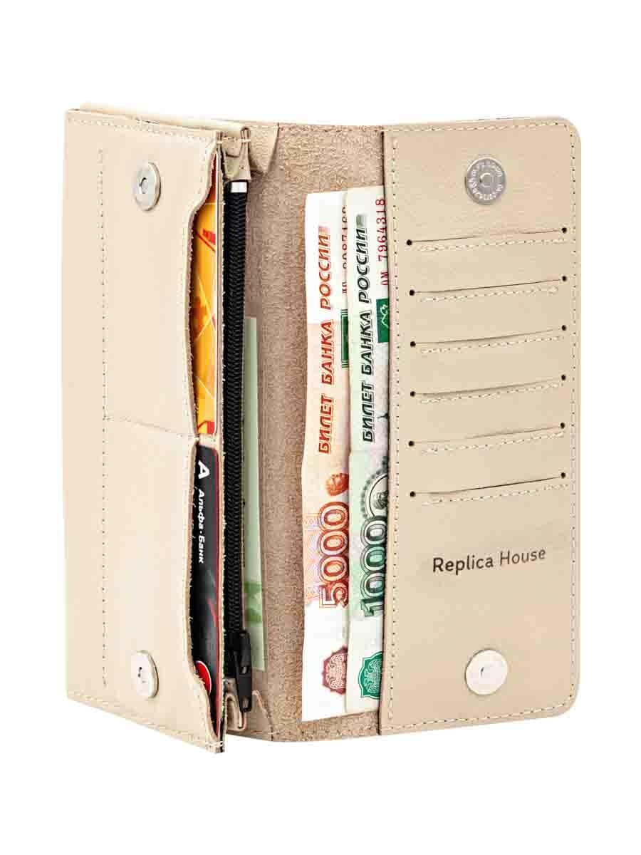 Внутри портмоне предусмотрены отделение для банкнот, отдельный карман для мелочи и секция для пластиковых карт. Детально рассмотреть наполнение можете на представленных фото.