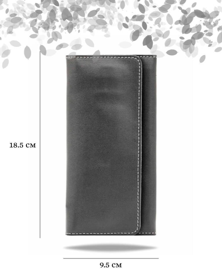 Размер портмоне в сложенном виде 18,5х9,5х1,5 см.