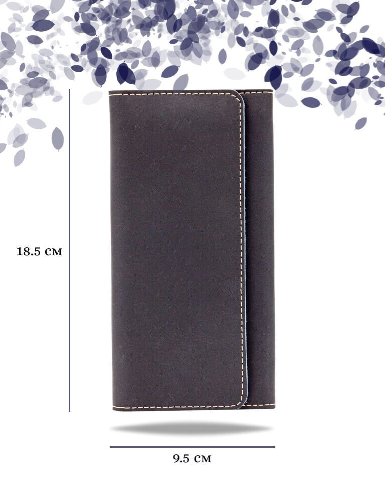 Размер портмоне в сложенном виде 18,5х9,5х1,5 см.