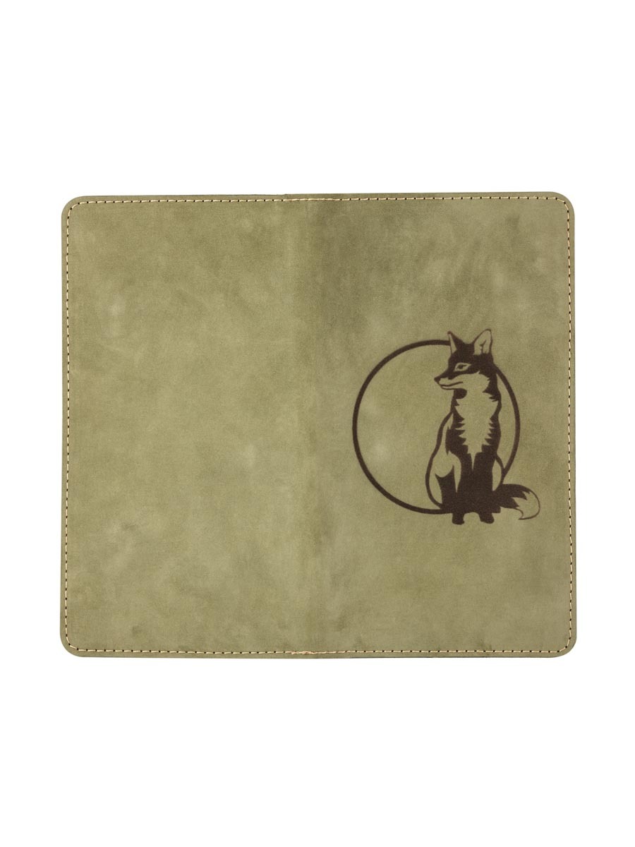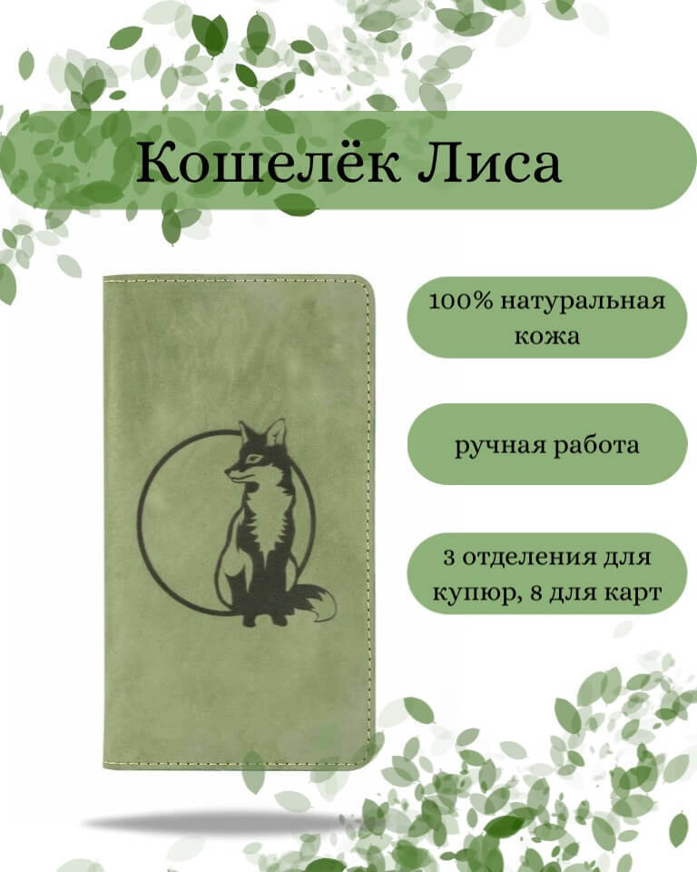 Выполнено из натуральной бычьей кожи с лазерной гравировкой принта Лиса на лицевой стороне и логотипа бренда производителя внутри кошелька.