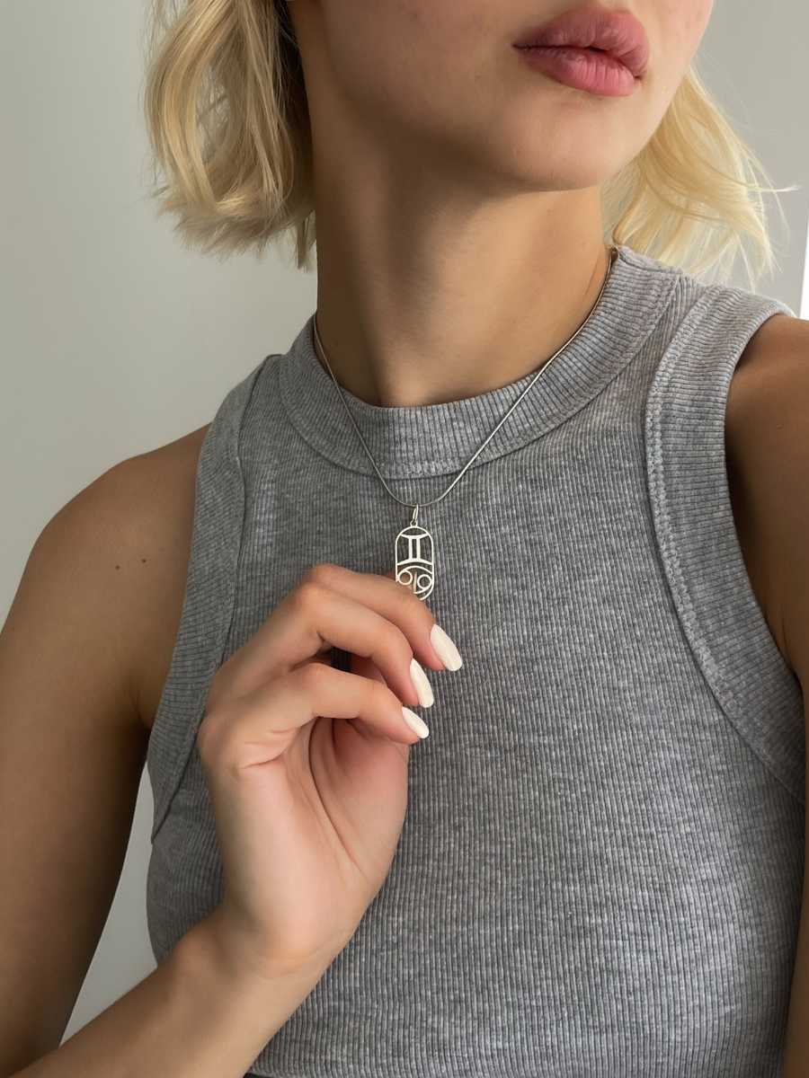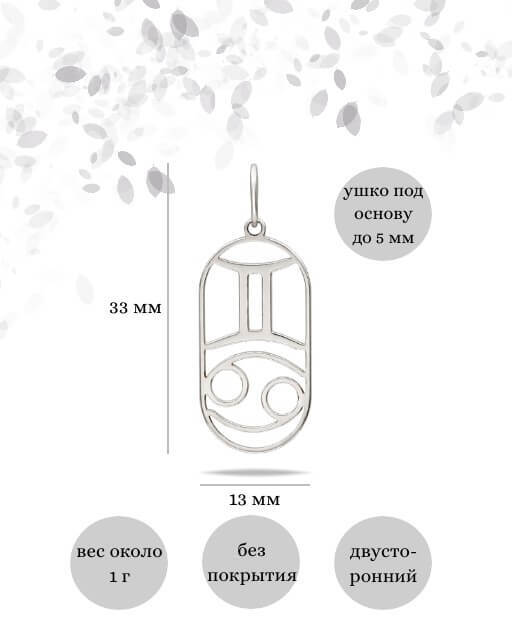 Ювелирная подвеска на шею куспид Близнецы-Рак изготовлена из серебра 925 пробы и отполирована до зеркального блеска.