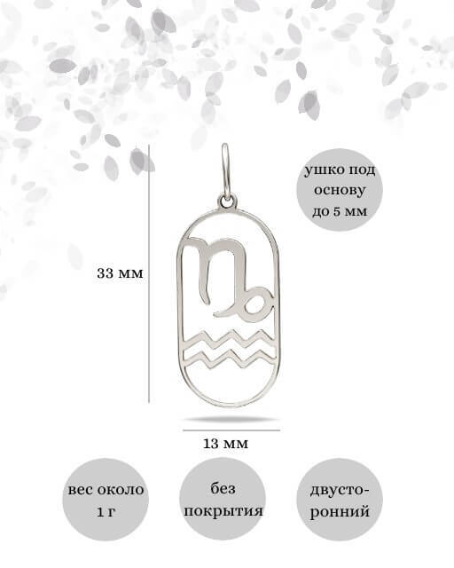 Ювелирная подвеска на шею куспид Козерог-Водолей изготовлена из серебра 925 пробы и отполирована до зеркального блеска.