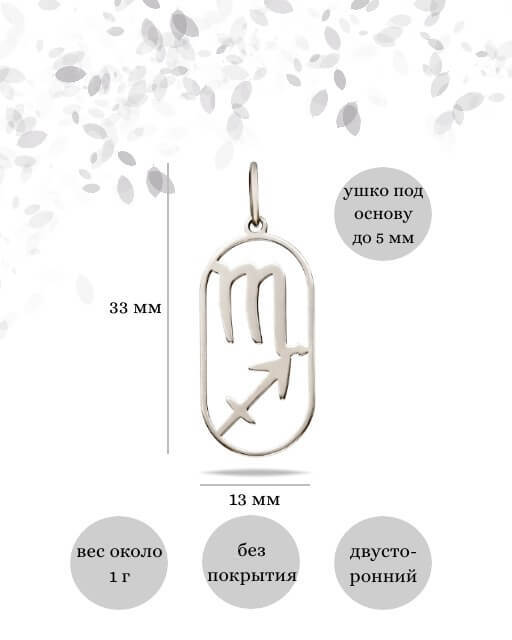 Ювелирная подвеска на шею куспид Скорпион-Стрелец изготовлена из серебра 925 пробы и отполирована до зеркального блеска.