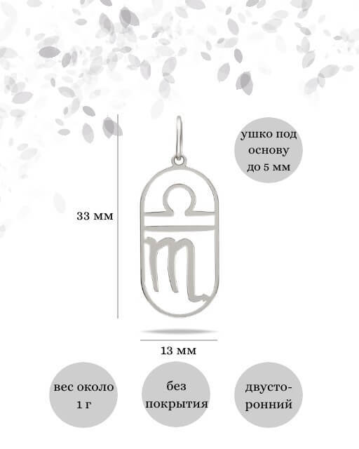 Ювелирная подвеска на шею куспид Весы-Скорпион изготовлена из серебра 925 пробы и отполирована до зеркального блеска.