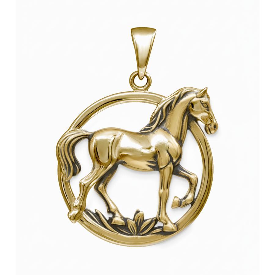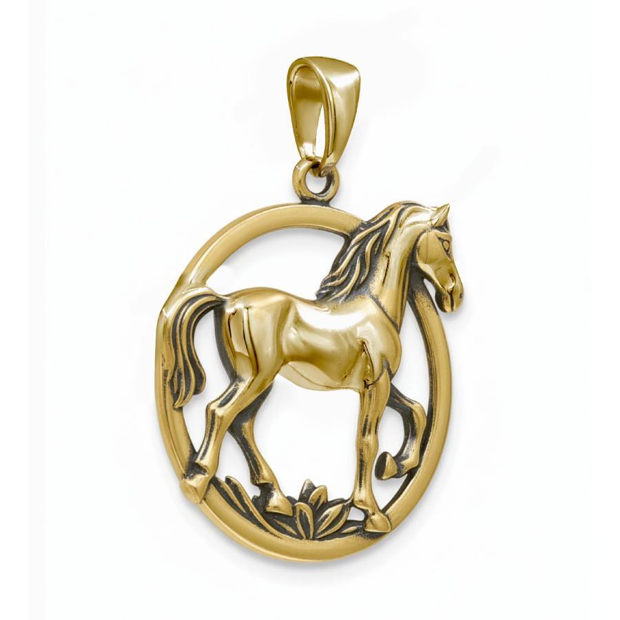 Подвеска "Лошадь в круге" из бронзы — украшение, которое сочетает в себе высокое качество исполнения и элегантный дизайн.