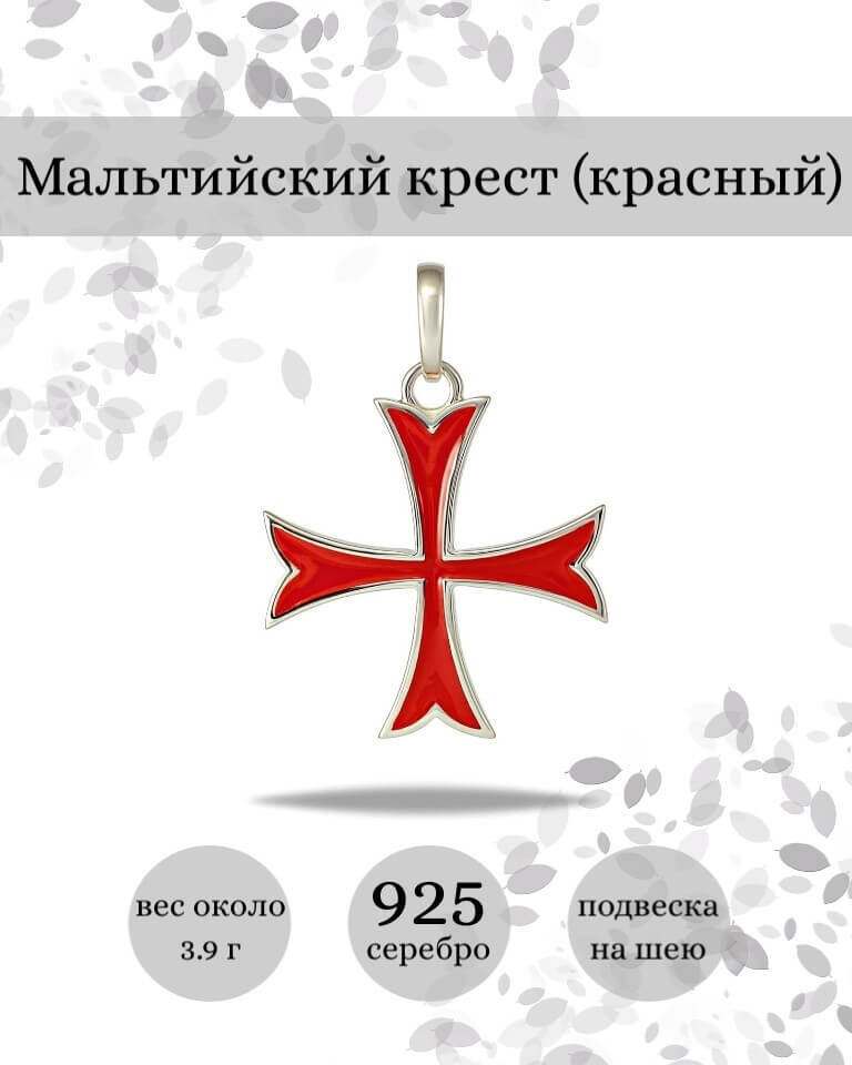Мальтийский крест - подвеска с эмалью красного и черного цвета