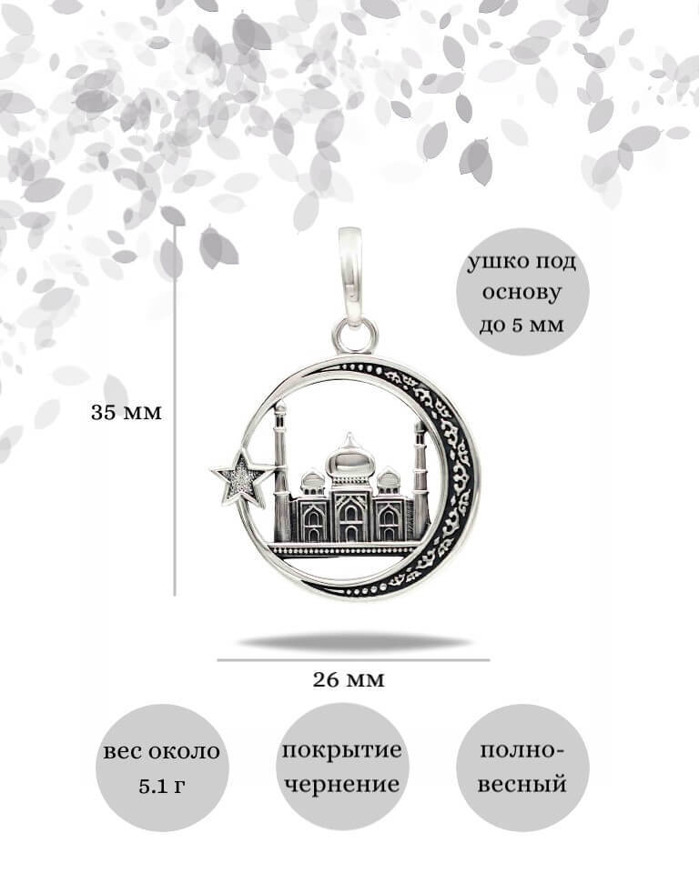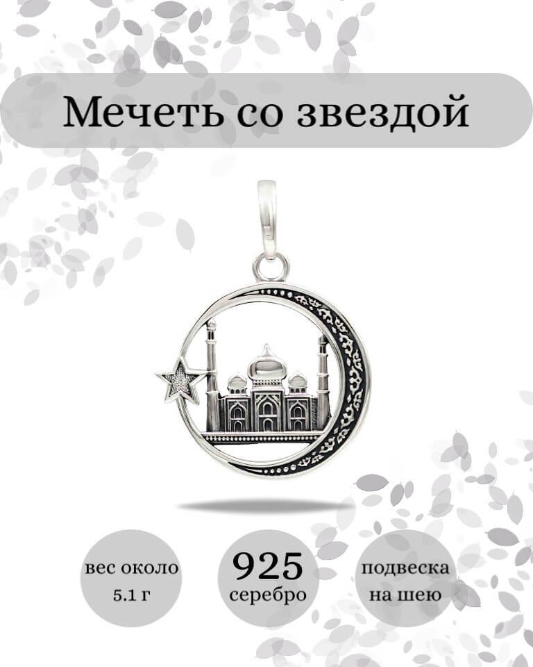 Полумесяц на кулоне символизирует исламский мусульманский календарь, а также несёт в себе сакральное значение, будет служить для своего владельца защитным амулетом, оберегом от сглаза, зла и темных сил. Ювелирное украшение подарит своему владельцу здоровье, успех, благополучие и настроит на светлые мысли.