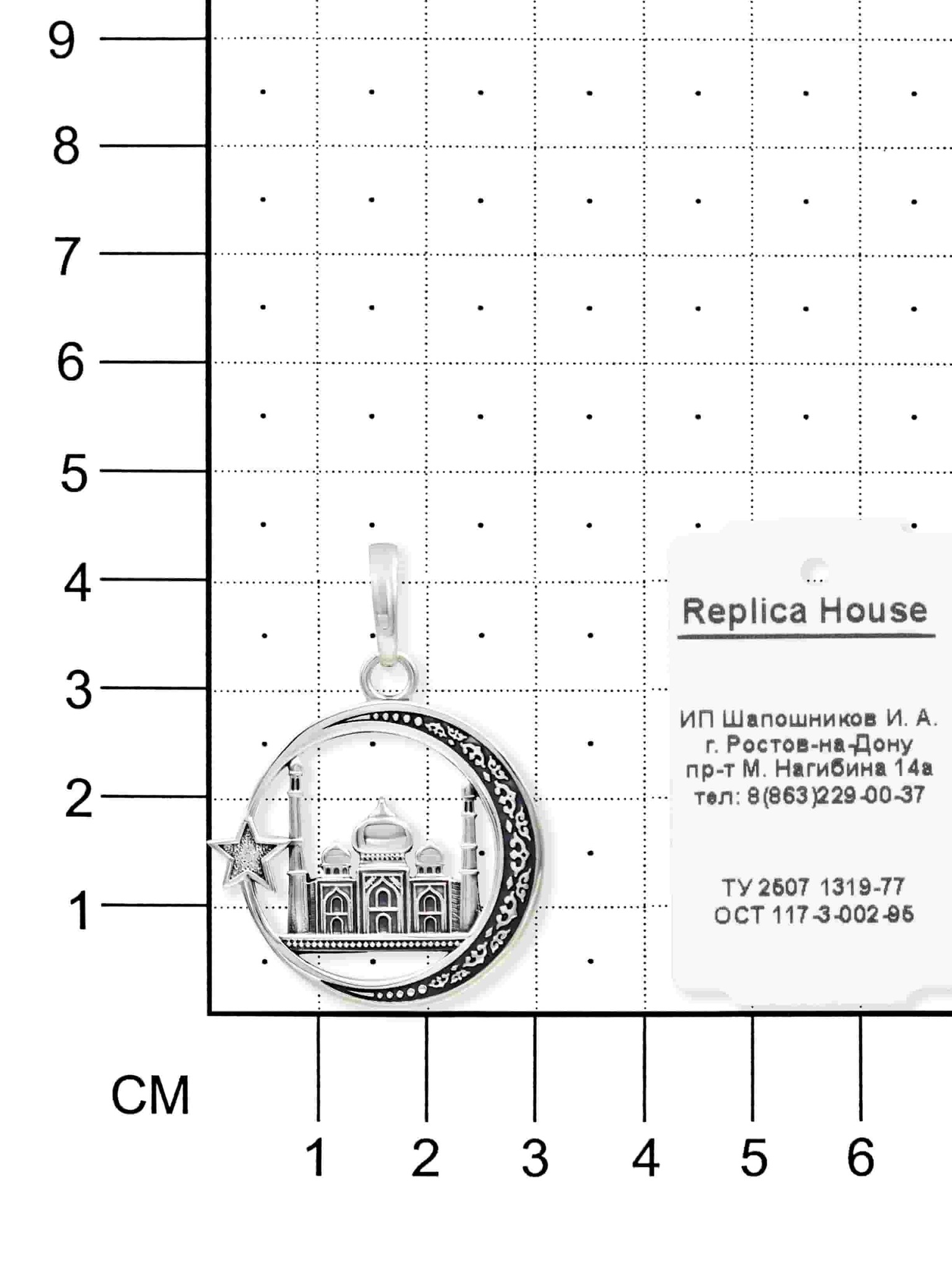 Высота подвески от нижнего края до верхней точки ушка составляет 35 миллиметра. Ширина равна26 миллиметров. Средний вес подвески составляет 5.1 грамм стерлингового серебра.