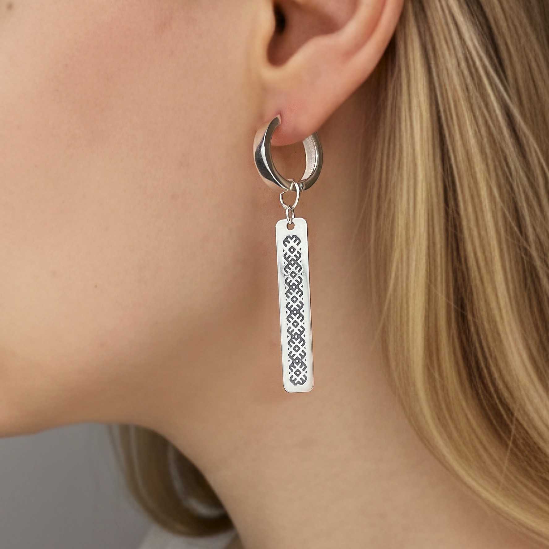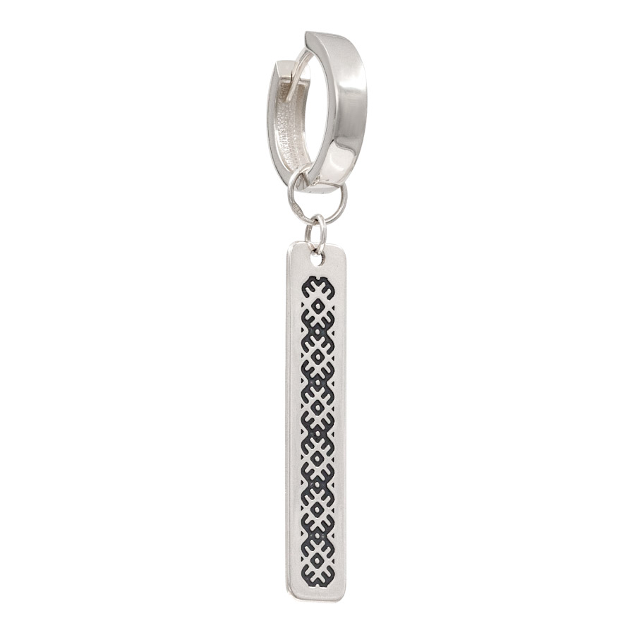 Серебряная моносерьга с подвеской в славянском стиле — это утончённое украшение, в котором гармонично сочетаются древние символы и современная эстетика. Изделие выполнено из серебра 925 пробы и украшено изящным чернением, подчёркивающим каждую линию старинного орнамента. Благодаря контрасту светлого металла и тёмных акцентов узор выглядит выразительно и глубоко, словно храня в себе историю поколений.
