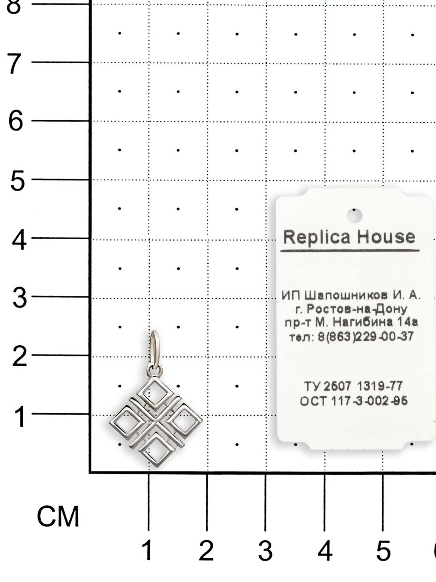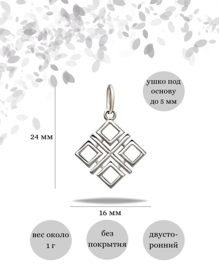 Проба пробирной палаты (925) не устанавливается согласно действующего законодательства РФ. Изделию присвоен уникальный номер (УИН), по нему можно проверить подлинность украшения на сайте пробирной палаты. Модель двухсторонняя, плоская.