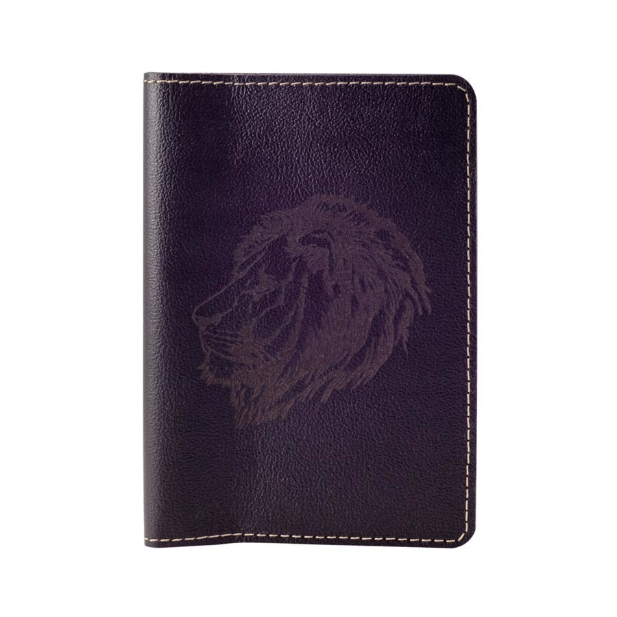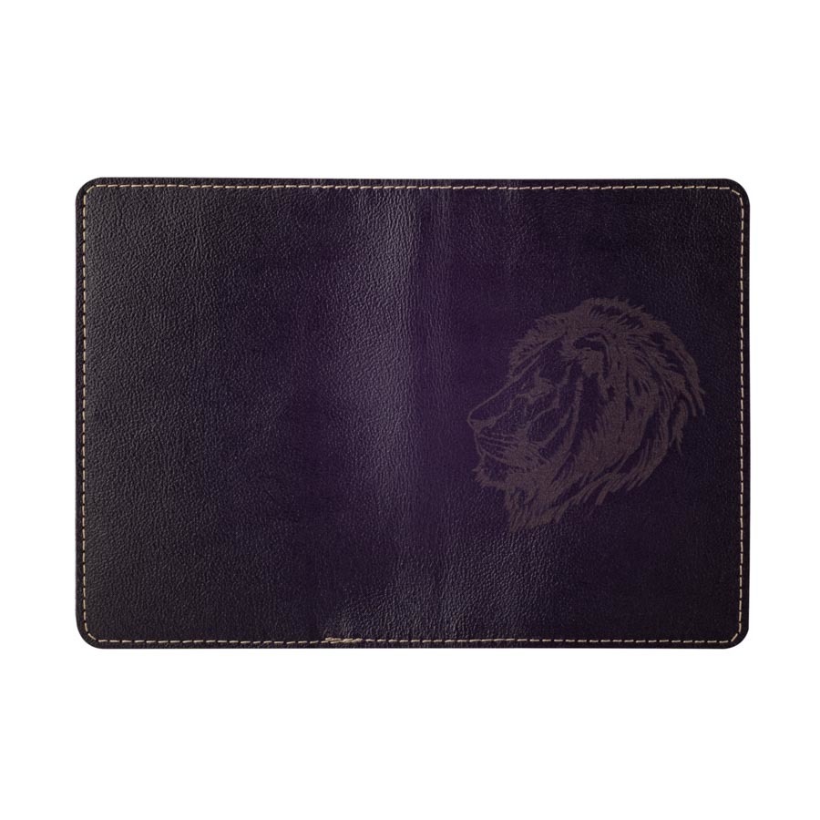 На фасадной части обложки методом лазерной гравировки нанесено изображение в виде головы льва.