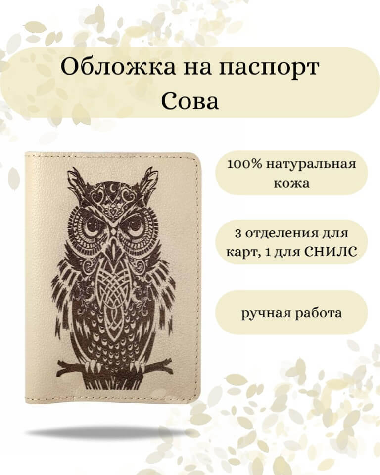 Обложка для паспорта мудрая сова имеет строгий, практичный и минималистичный дизайн. Если цените качество, надежность и не готовы идти на компромиссы, то такое изделие заслуживает пристального внимания.