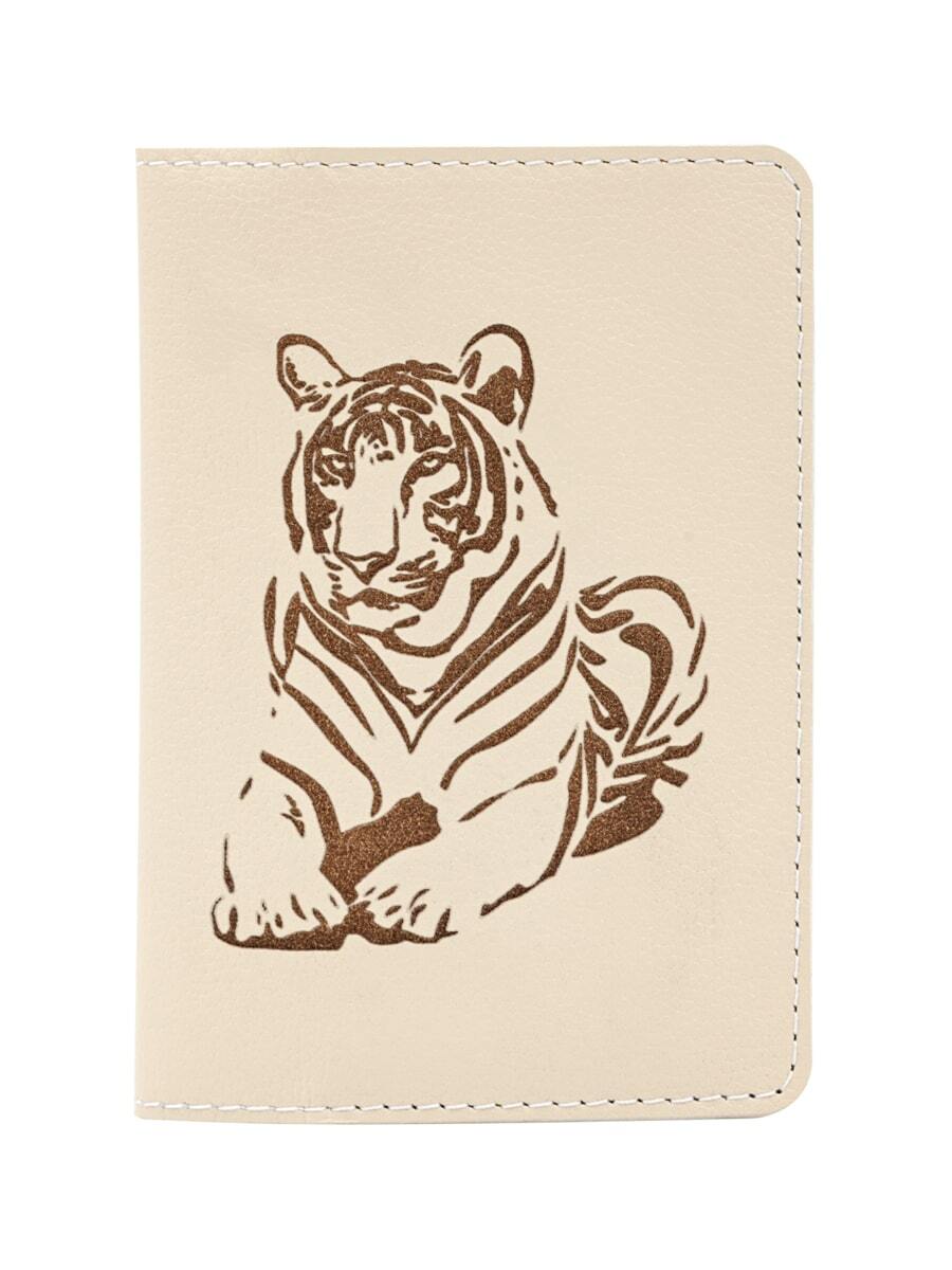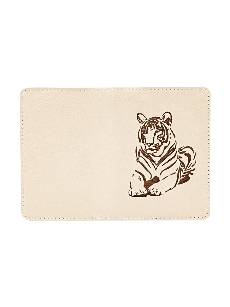 Обложка Тигр молочная из натуральной кожи