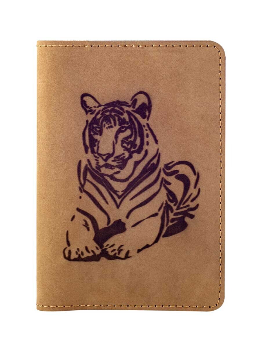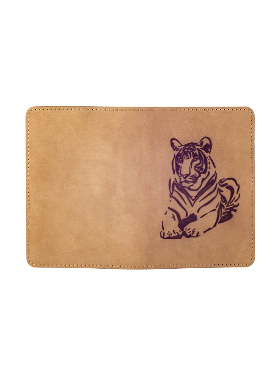 На фасадной части обложки методом лазерной гравировки нанесено изображение в виде лежащего Тигра.