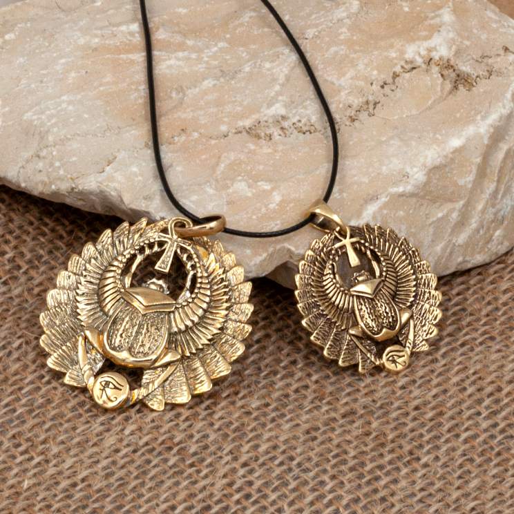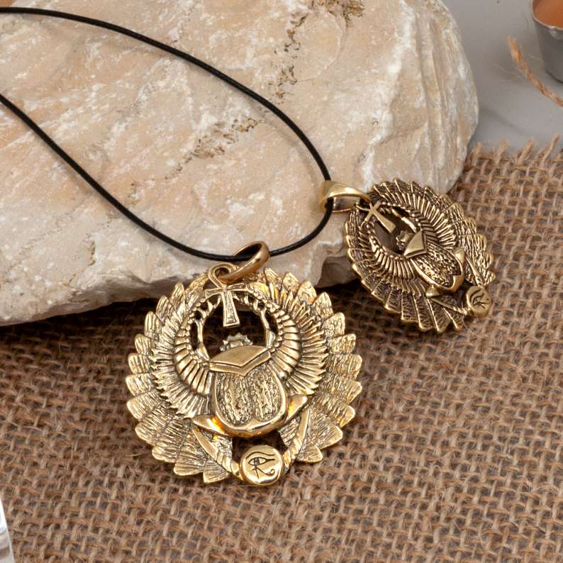 Носить подвеску в виде Жука-Скарабея с символами Анкх и око Ра — значит быть под защитой мудрости и древних сил, ощущать связь с энергией прошлого и принимать в себя силу вечности.