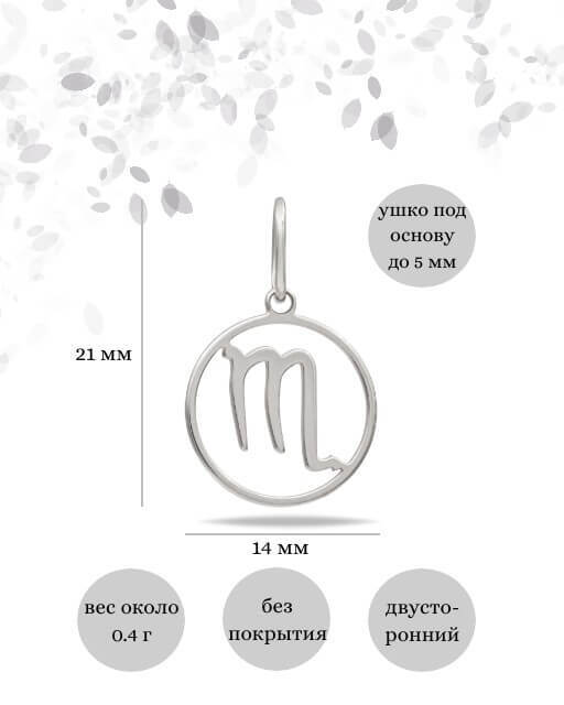 Миниатюрная серебряная подвеска Знак зодиака Скорпион. Модель двусторонняя, плоская. Несмотря на "воздушность" украшения, подвеска обладает достаточной жесткостью, так как прошла дополнительную термическую обработку (закаливание).