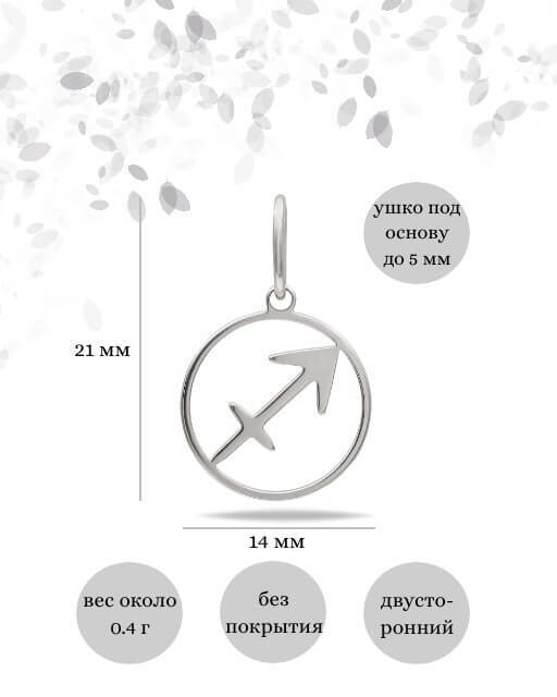 Миниатюрная серебряная подвеска Знак зодиака Стрелец. Модель двусторонняя, плоская. Несмотря на "воздушность" украшения, подвеска обладает достаточной жесткостью, так как прошла дополнительную термическую обработку (закаливание).
